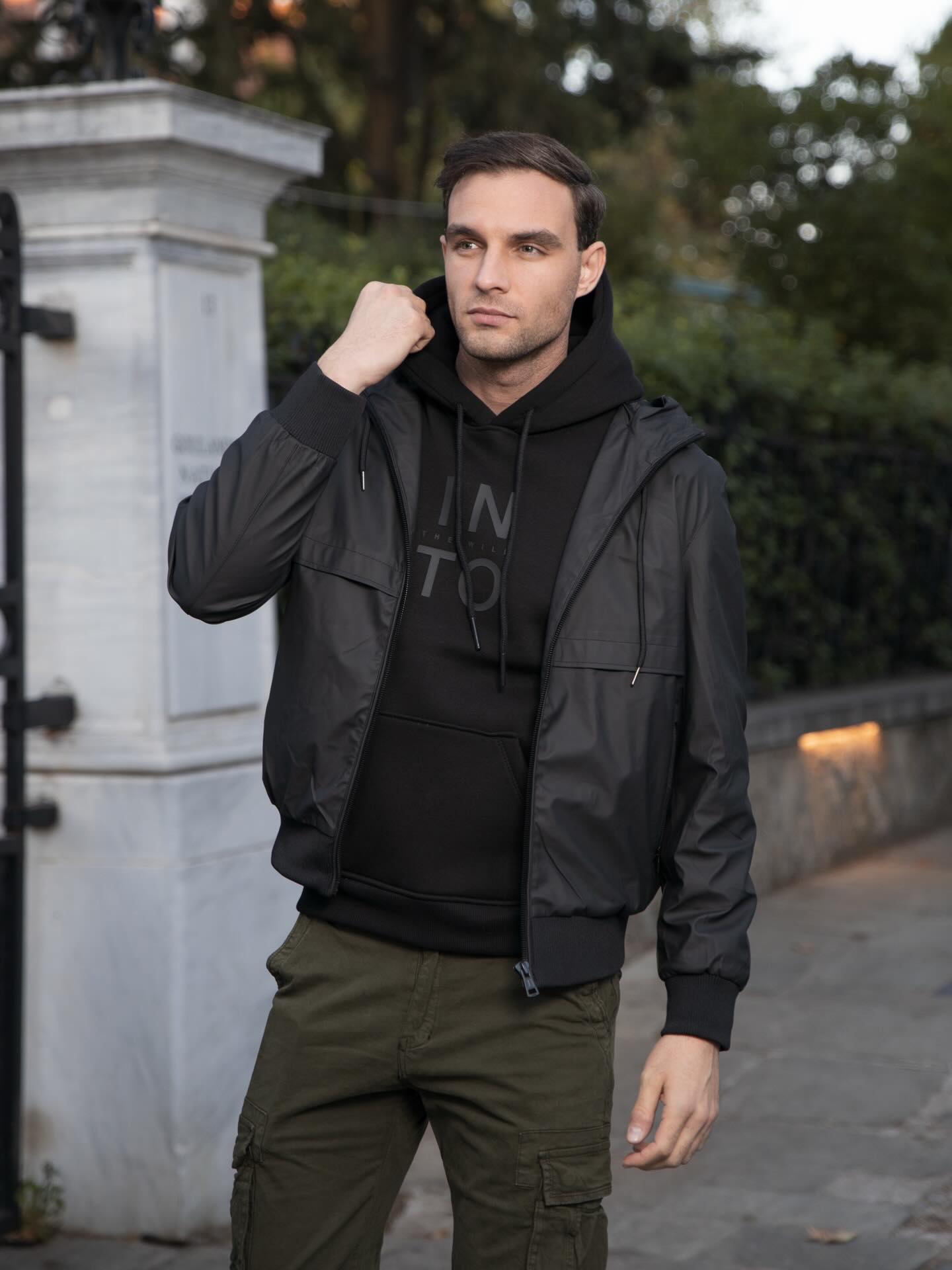 Μαύρη ανδρική ζακέτα βαμβακερή FR με φερμουάρ – regular fit
