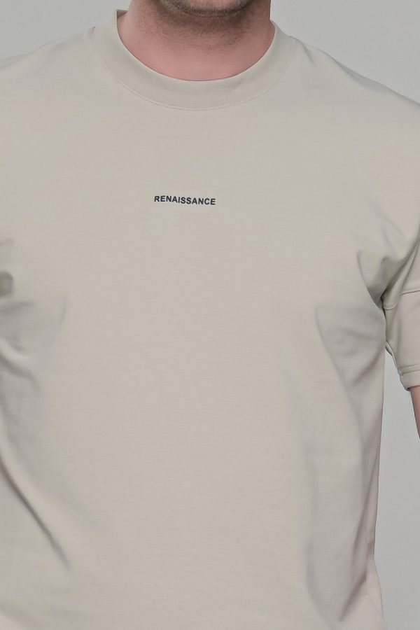 Μπεζ κοντομάνικο t-shirt ανδρικό με στάμπα “INTENSE ATTITUDE”