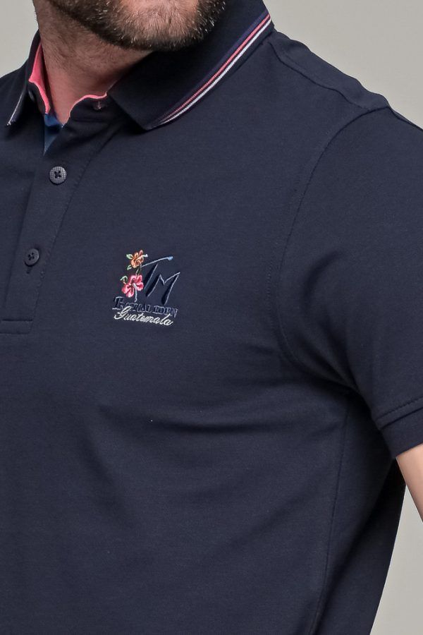 Μπλε σκούρο ανδρικό πόλο μπλουζάκι με κέντημα στο στήθος
