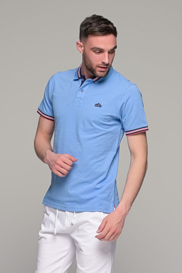 Μπλε ραφ ανδρικό πόλο μπλουζάκι MASSARO με λευκή πατιλέτα – Regular fit
