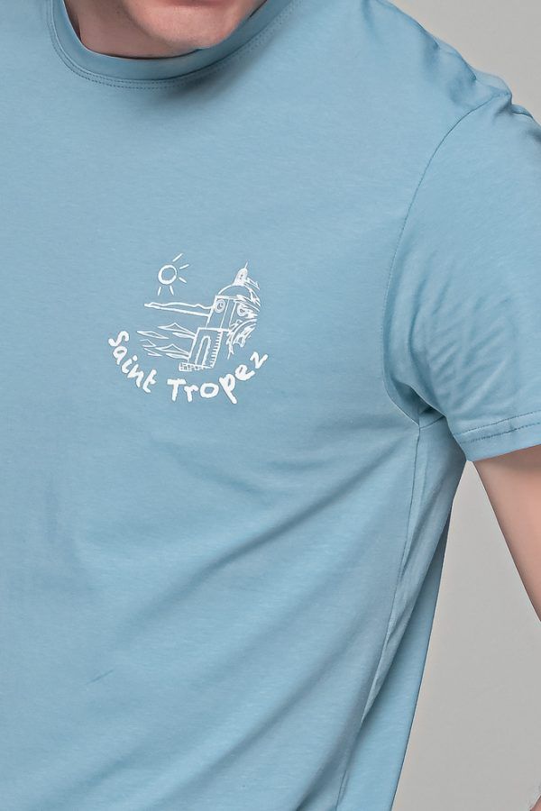Σιέλ ανδρικό κοντομάνικο T-SHIRT με στάμπα “Saint Tropez”