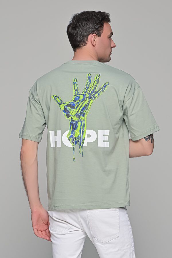 Oversized ανδρικό t-shirt χακί με στάμπα “Hope” στην πλάτη
