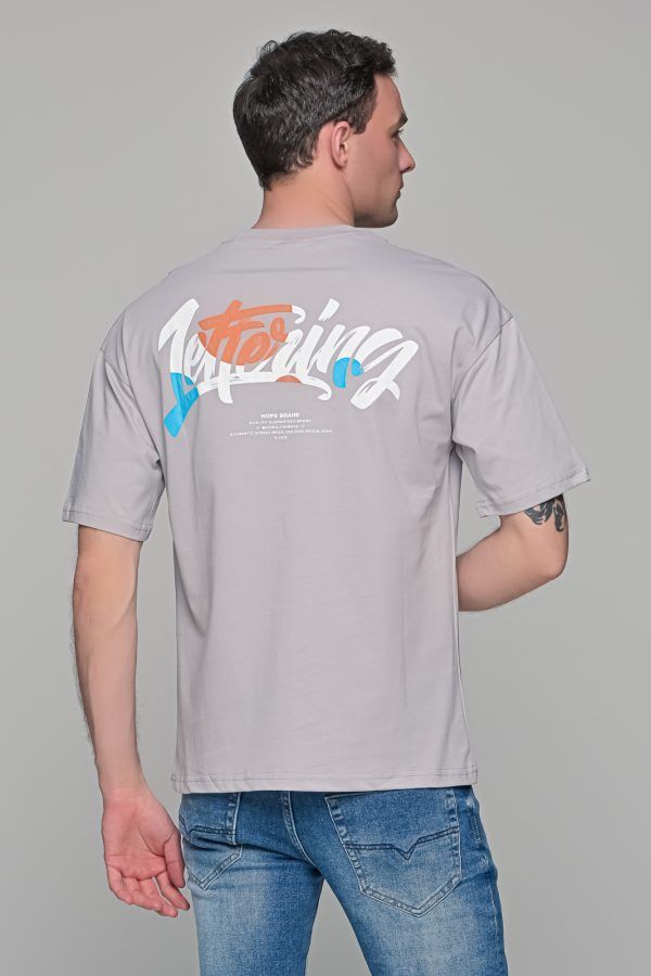 Oversized ανδρικό t-shirt γκρι με στάμπα στην πλάτη