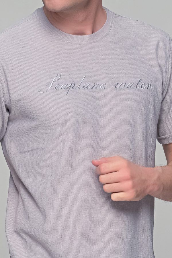 Γκρι ανδρικό κοντομάνικο t-shirt με σχέδιο στην ύφανση και διακριτική στάμπα– regular fit