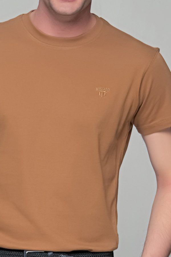 Μονόχρωμο κάμελ ανδρικό κοντομάνικο T-SHIRT – Basic Collection