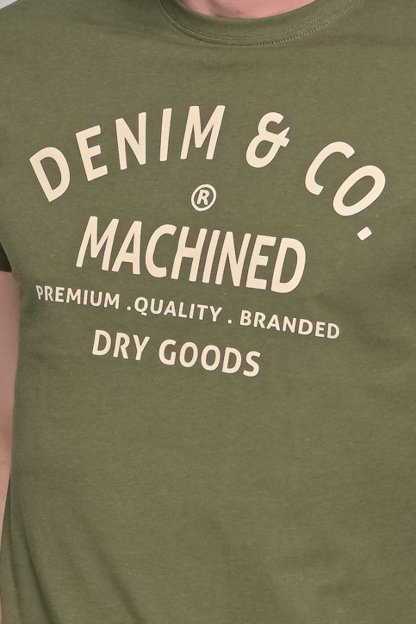 Χακί ανδρικό κοντομάνικο T-SHIRT με στάμπα “denim&co”