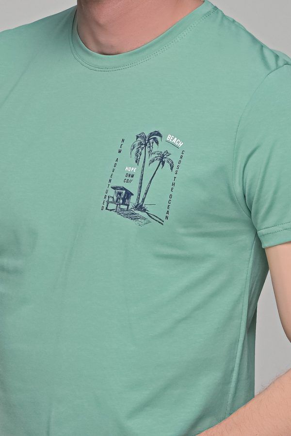 Πράσινο mint ανδρικό t-shirt κοντομάνικο με στάμπα DISRT – slim fit