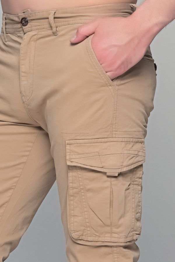 Μπεζ καλοκαιρινό ανδρικό Cargo παντελόνι με τσέπες και λάστιχο – Slim Fit
