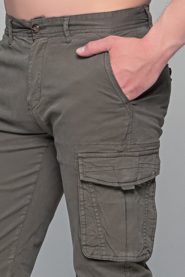 Cargo ανδρικό παντελόνι πράσινο – χακί με τσέπες και λάστιχο – Slim Fit