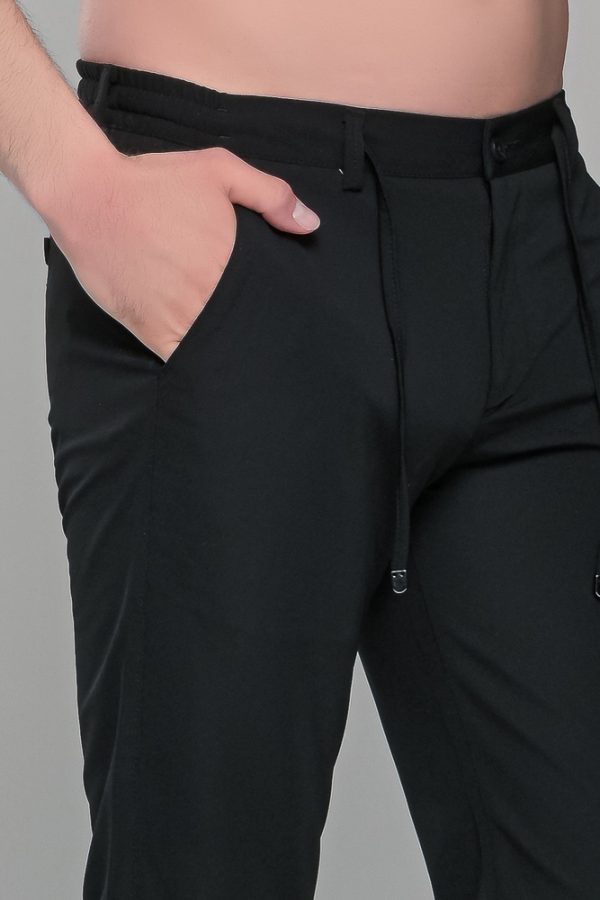 Μαύρο υφασμάτινο ανδρικό παντελόνι με λάστιχο τύπου κοστουμιού καλοκαιρινό– Slim fit