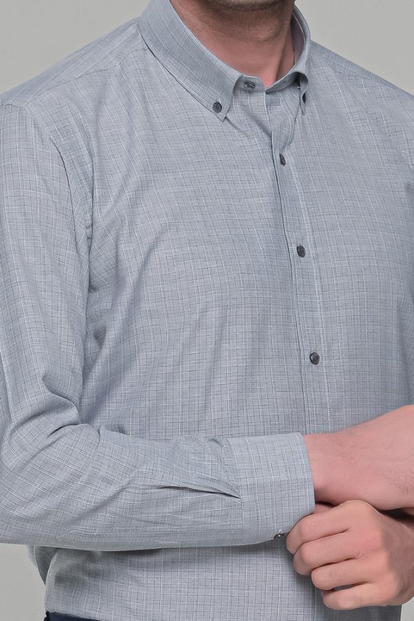 Σπορ γκρι ανοιχτό ανδρικό καρό πουκάμισο – Slim fit