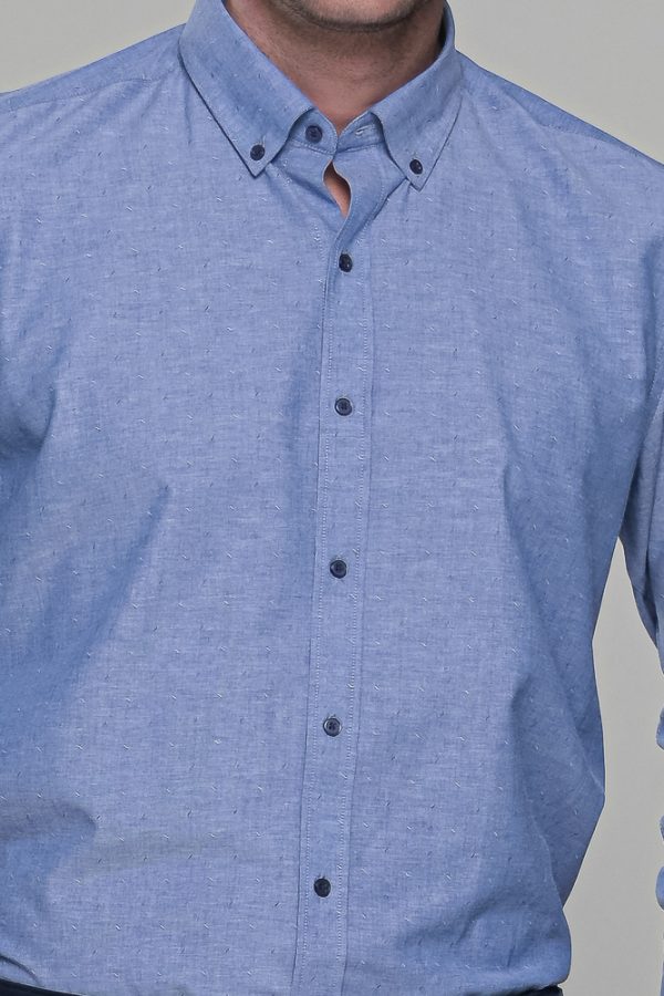 Γαλάζιο fil a fil ανδρικό πουκάμισο PAPARAZZI χωρίς Τσεπάκι – Slim Fit