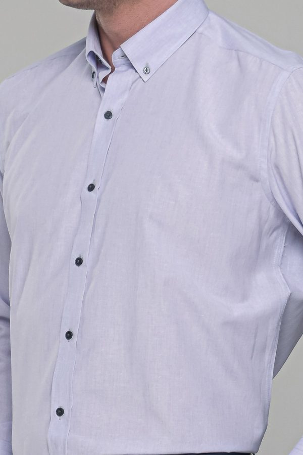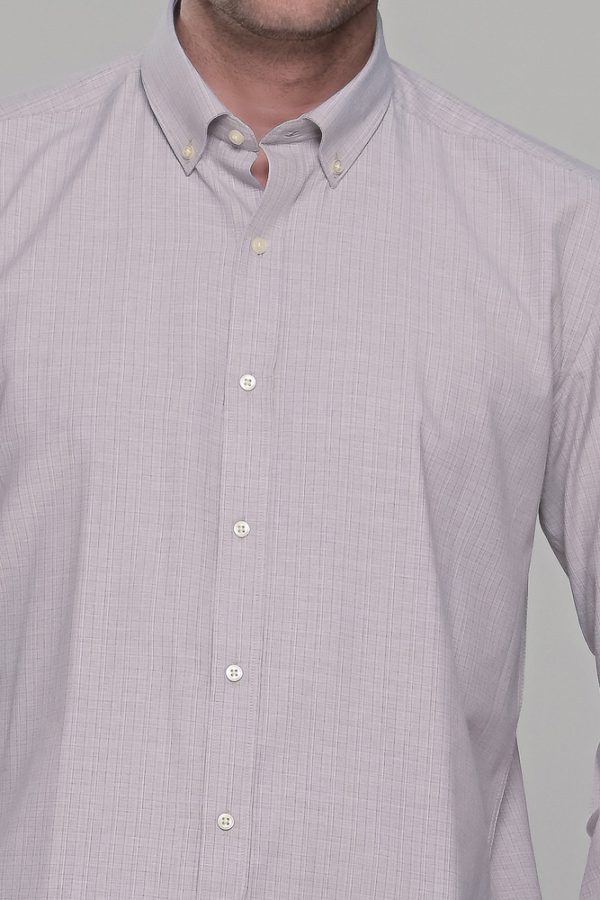Λευκό Πουκάμισο Με Λιλά Ρίγα PAPARAZZI χωρίς Τσεπάκι – Classic Fit