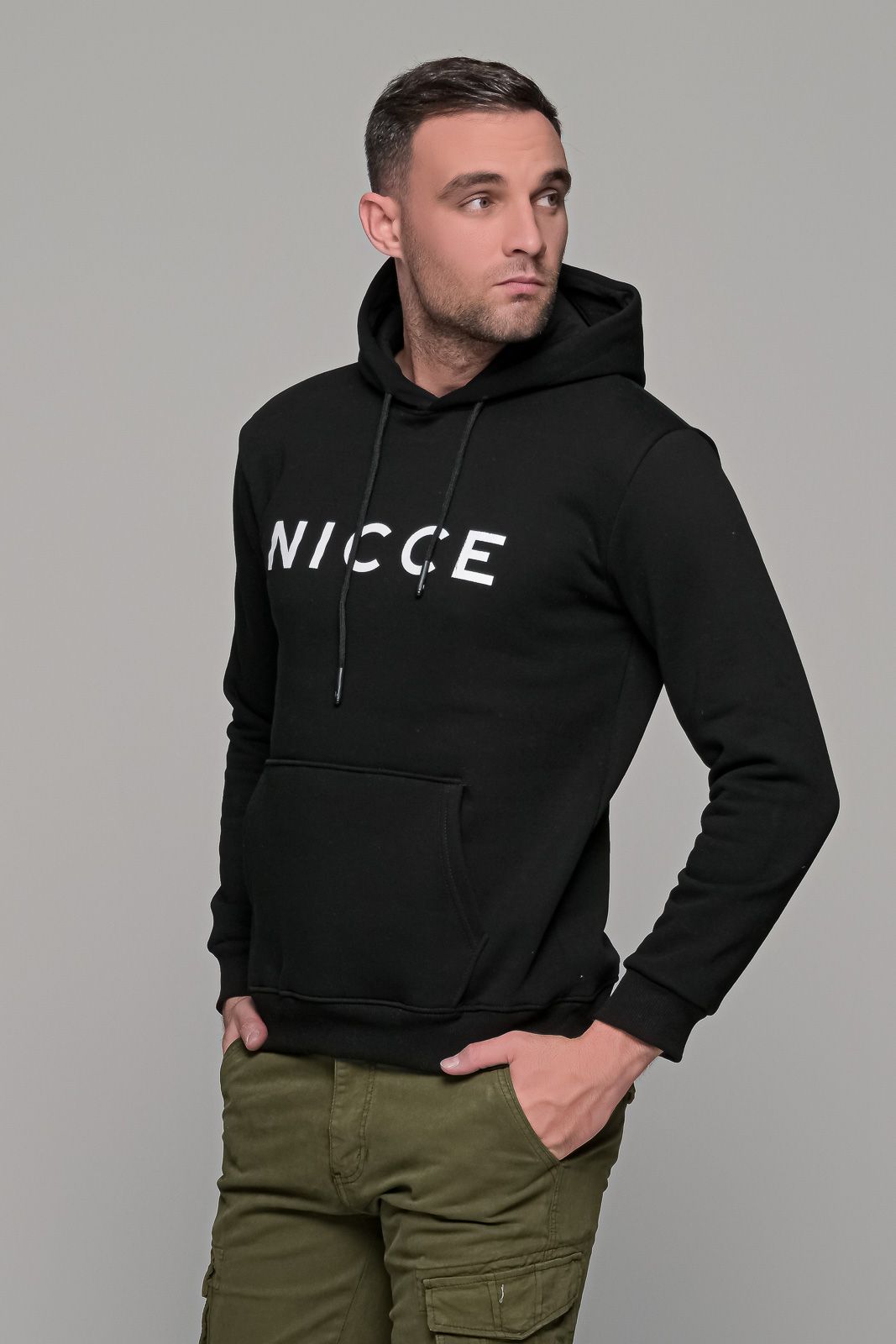 Ανδρικό μαύρο φούτερ με στάμπα “NICCE” και κουκούλα