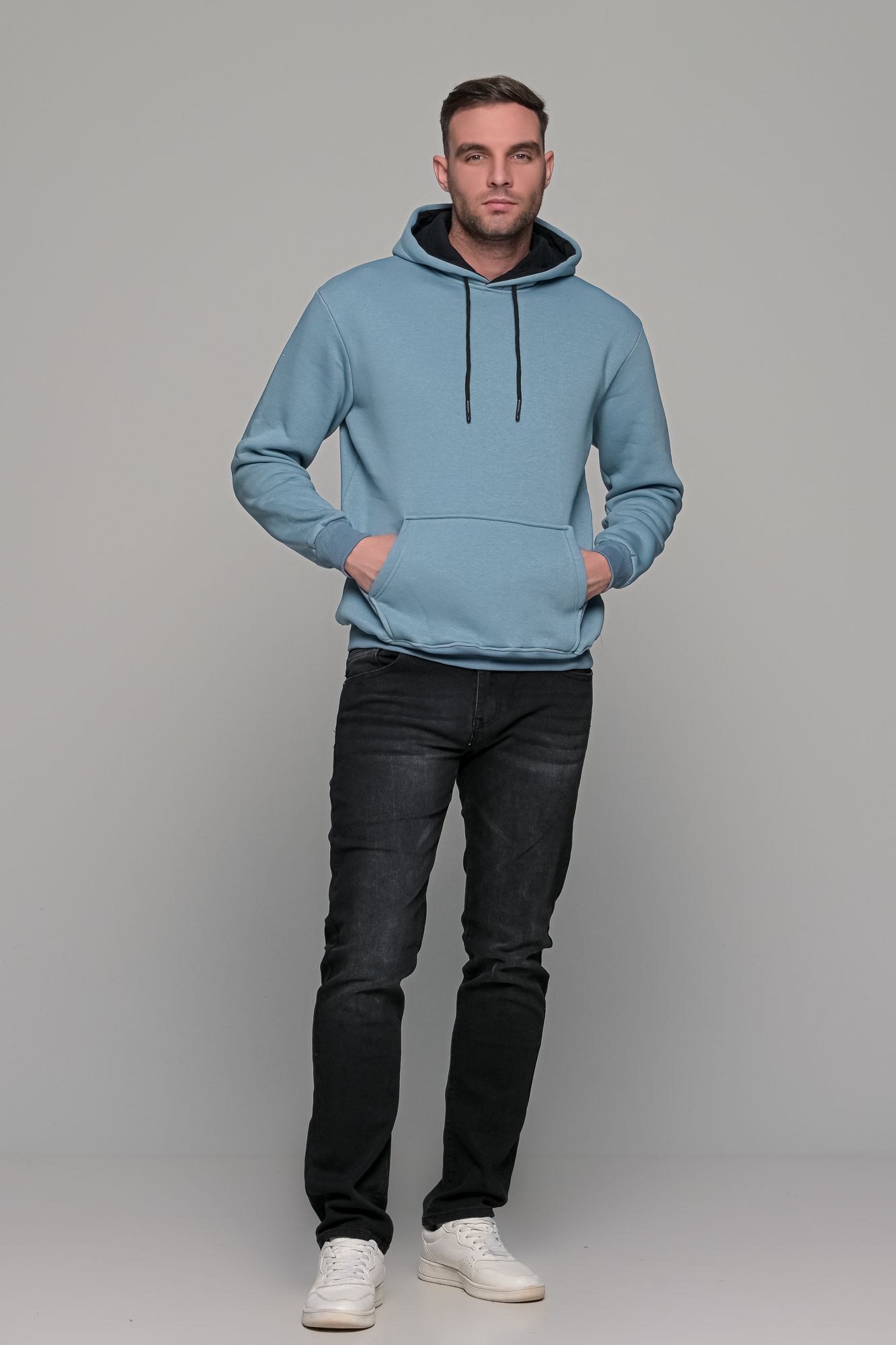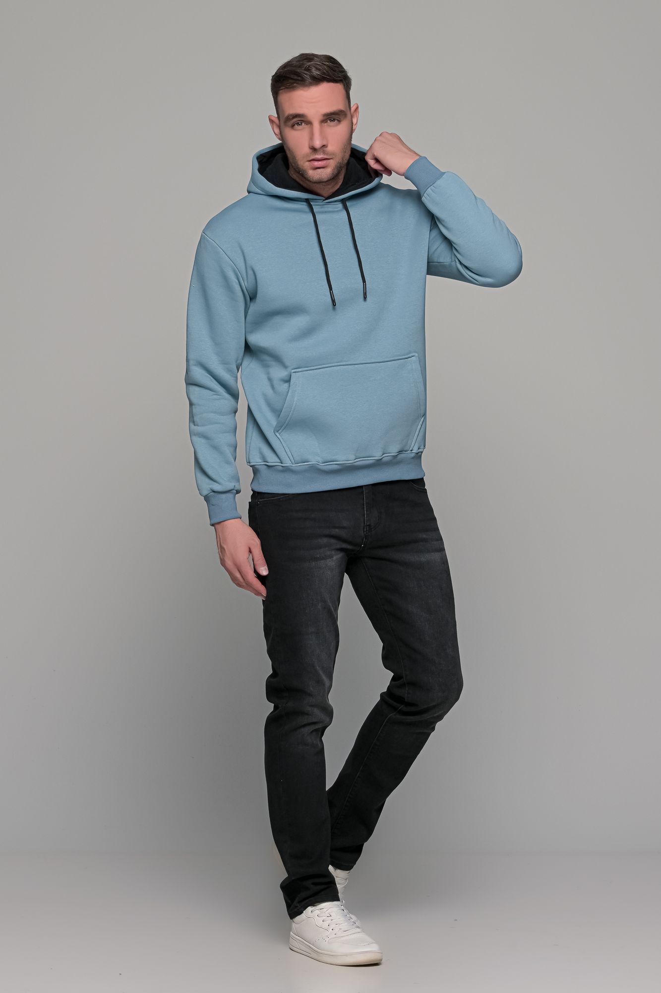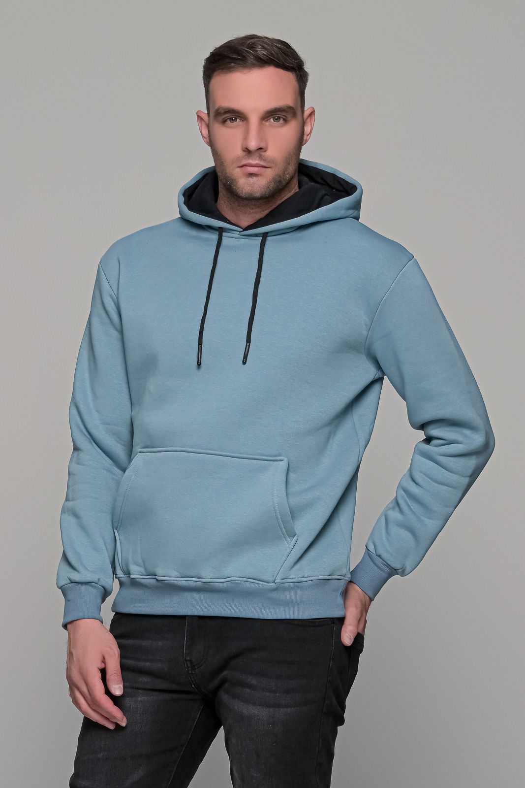 Ανδρικό μπλε σιέλ μονόχρωμο φούτερ με κουκούλα