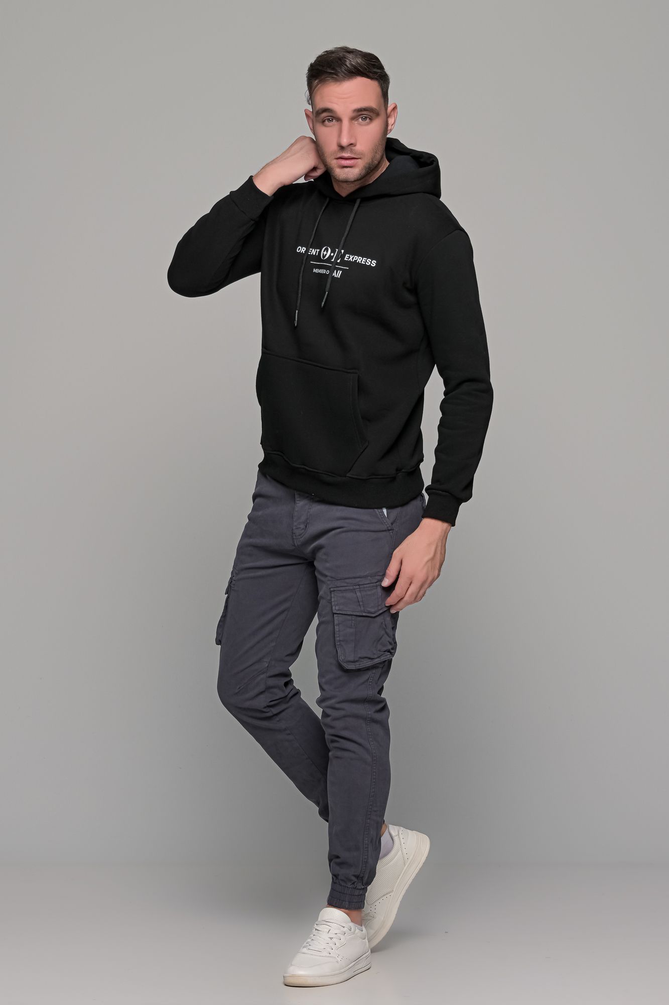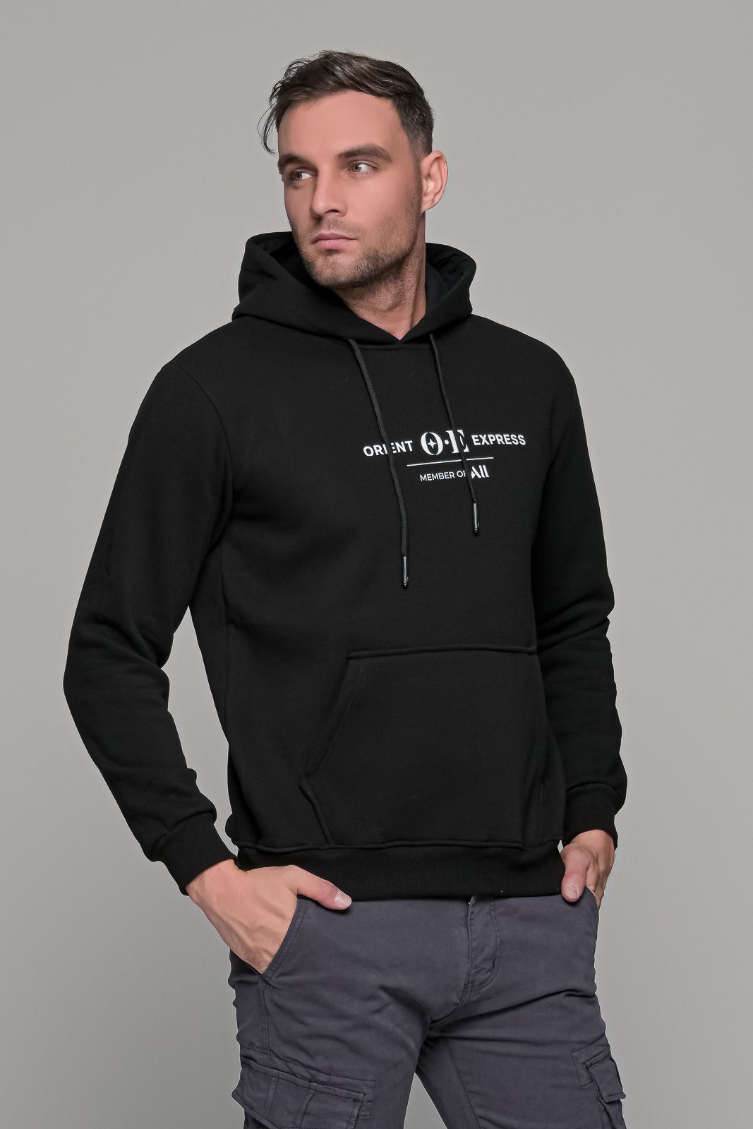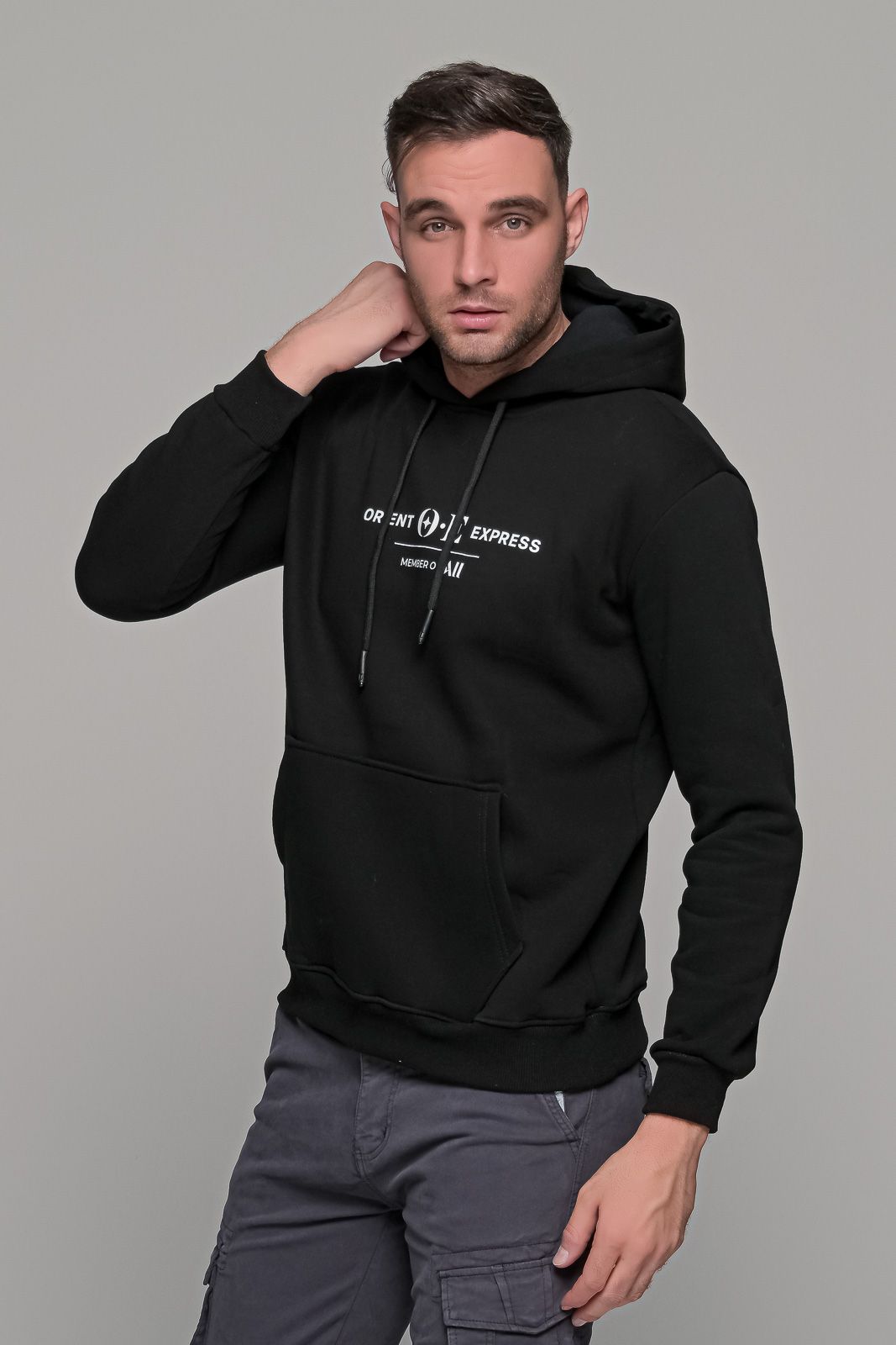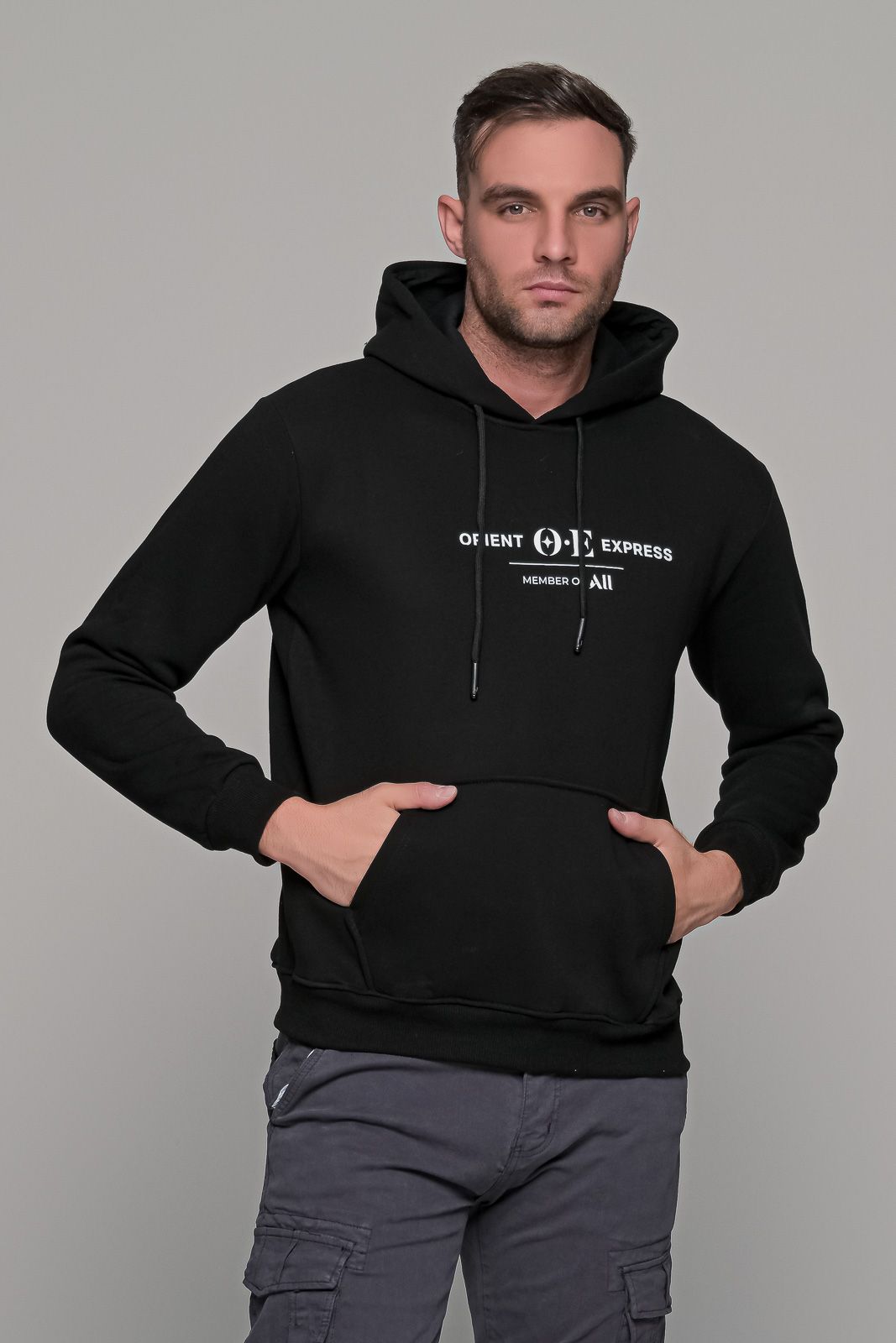 Φούτερ με στάμπα “ORIENT EXPRESS” και κουκούλα σε μαύρο χρώμα. Κατασκευασμένο από βαμβάκι, για να αναπνέει το δέρμα και να σας κρατάει ζεστούς, και συνθετικό για περισσότερη αντοχή και ανθεκτικότητα. Διαθέτει κουκούλα της οποίας το εσωτερικό είναι σε μαύρο χρώμα. Επίσης, διαθέτει κορδόνια αυξομείωσης σε μαύρο χρώμα. Η στάμπα “ORIENT EXPRESS” είναι σε χρώμα λευκό. Ύφασμα και στυλ κατάλληλο για κάθε μέρα, τόσο για πρωινές εξόδους όσο και για το σπίτι. Το Μαύρο φούτερ με στάμπα “ORIENT EXPRESS” μπορεί να φορεθεί τόσο με μια μπλούζα από μέσα όσο και σκέτο.
