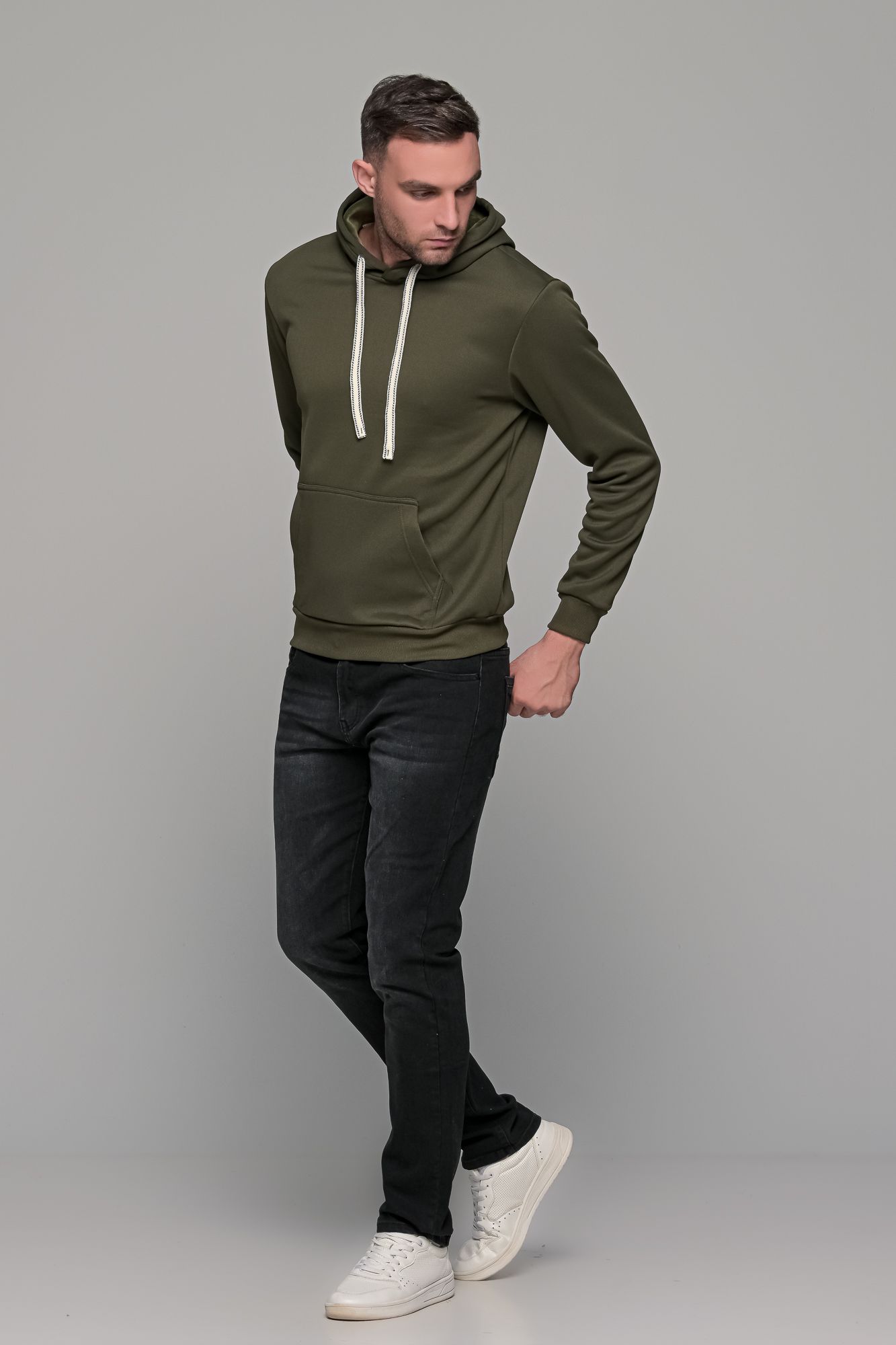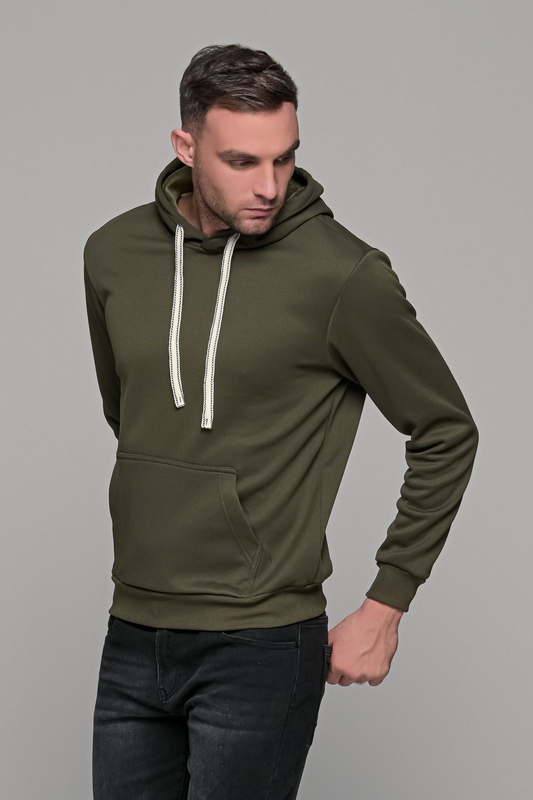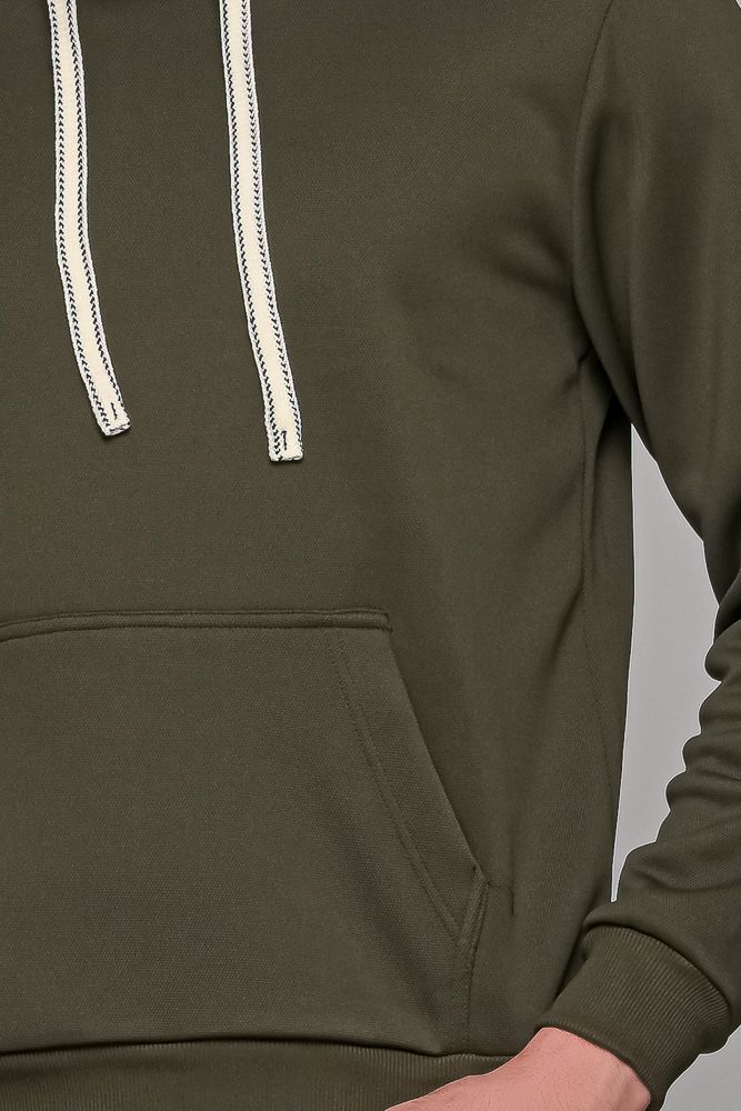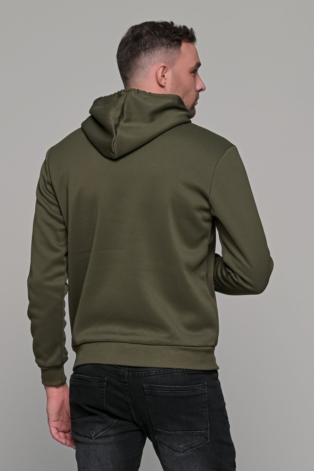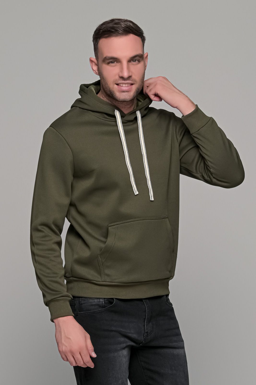 Μονόχρωμο πράσινο λαδί φουτερ με ύφανση και κουκούλα ανδρικό