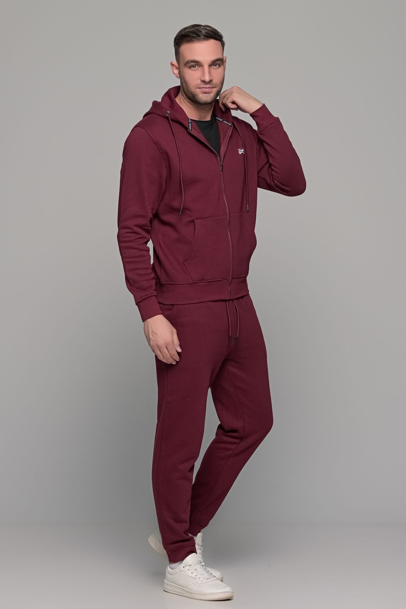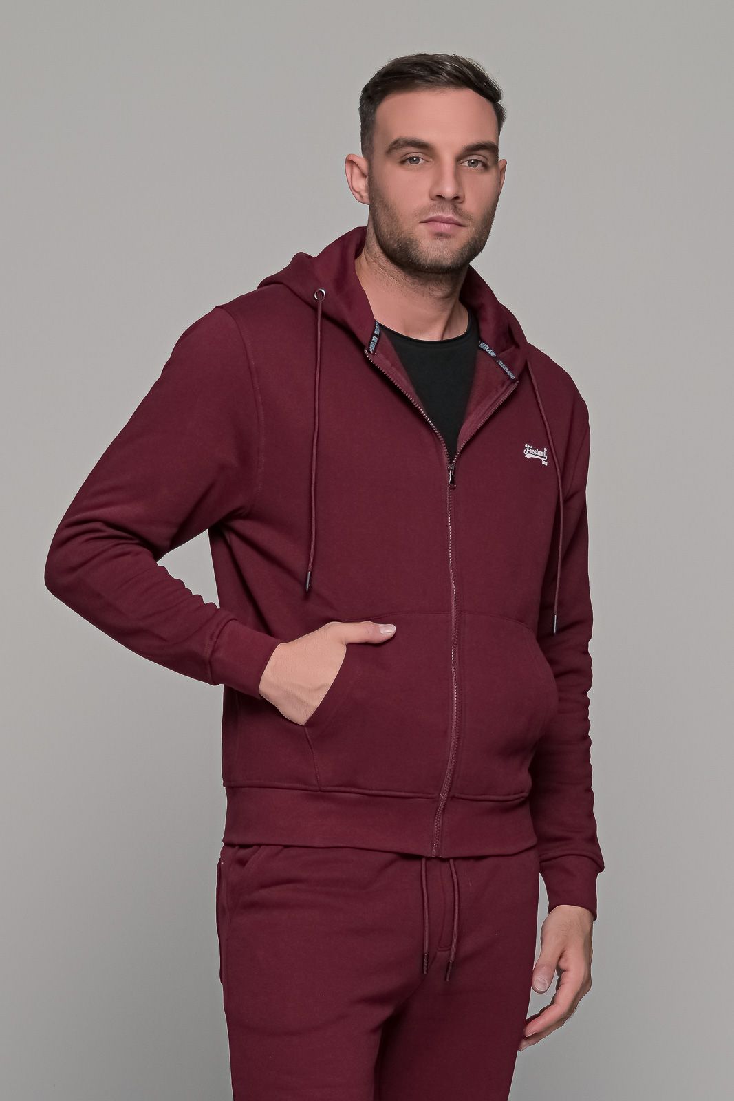 Μπορντό ανδρική ζακέτα φούτερ με φερμουάρ FR