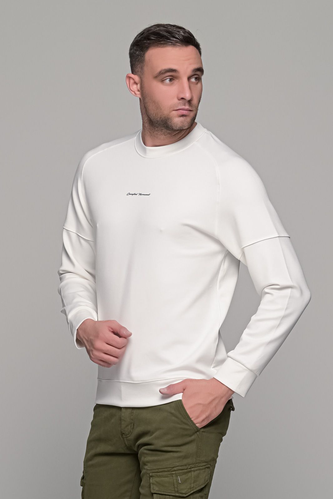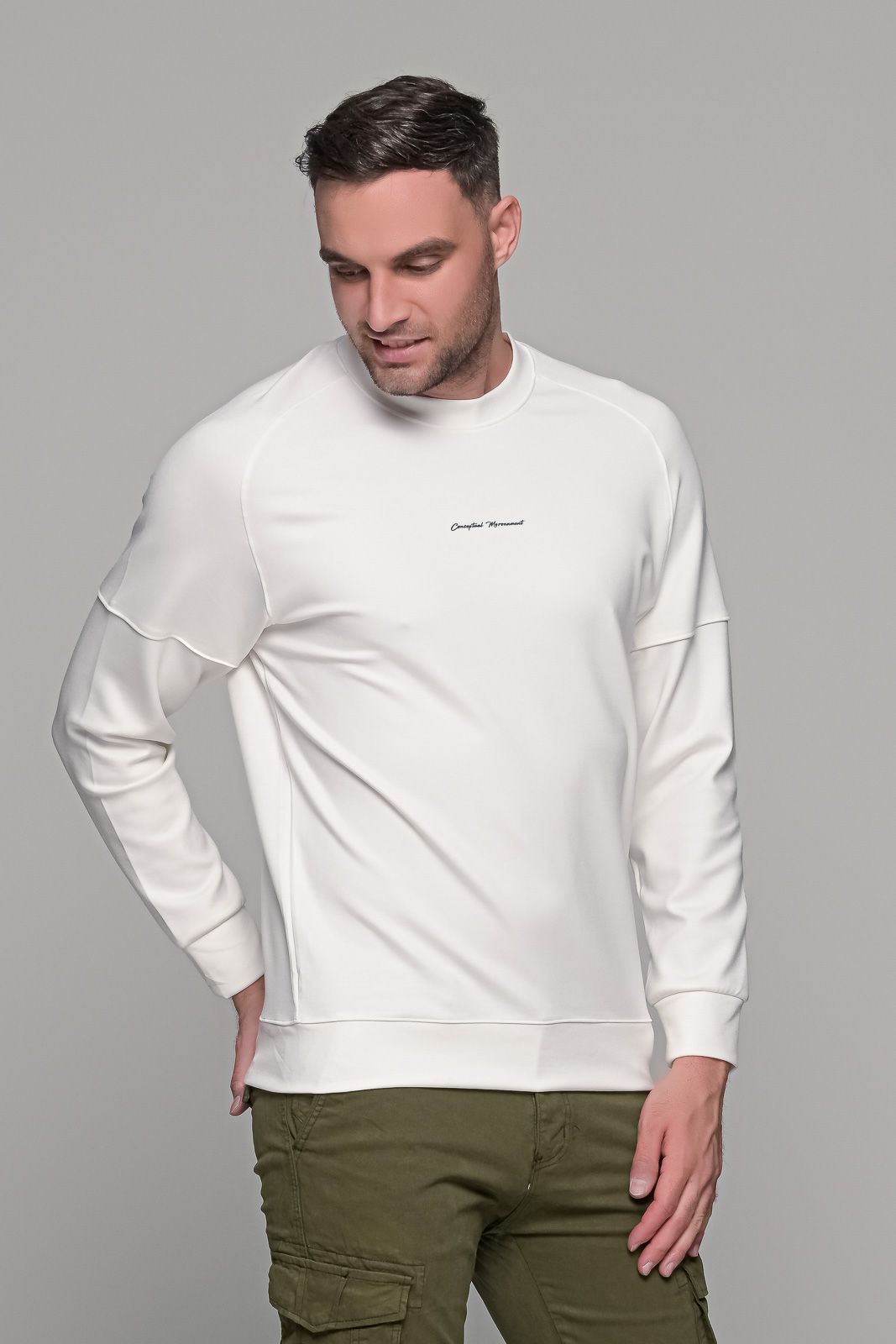 Ανδρική μπλούζα μακρυμάνικη σε λευκό χρώμα με μικρό σχέδιο στο στήθος (Conceptional). Η σύνθεση της αποτελείται από βαμβάκι για να κάθεται ωραία σε κάθε σώμα, συνθετικό για να είναι ζεστό τον Χειμώνα και να μην τσαλακώνεται εύκολα και ελαστικό για να μπορεί να πάρει την μορφή του σώματος. Η ανδρική μπλούζα μακρυμάνικη σε λευκό χρώμα διαθέτει λάστιχο στο τελείωμα στην μέση αλλά και στα μανίκια. Υπάρχει σχέδιο στα μανίκια σε στυλ κοντομάνικου με εσωτερικά μακρυμάνικου. Μπορεί να φορεθεί όλες τις ώρες της ημέρας. Συνδυάζεται εύκολα με μπουφάν και με όλα τα παντελόνια (chinos – τζιν – cargo). Η γραμμή του είναι κανονική (normal fit) οπότε συνίσταται η επιλογή του μεγέθους που φοράτε συνήθως.