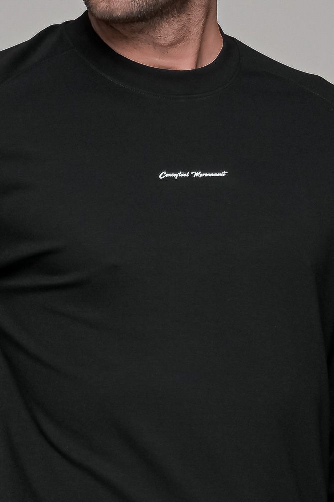 Ανδρική μπλούζα μακρυμάνικη σε μαύρο χρώμα με μικρό σχέδιο στο στήθος (Conceptional) και με σχέδιο στα μανίκια. Η γραμμή του είναι κανονική (normal fit) οπότε επιλέγετε το μέγεθος που φοράτε συνήθως.