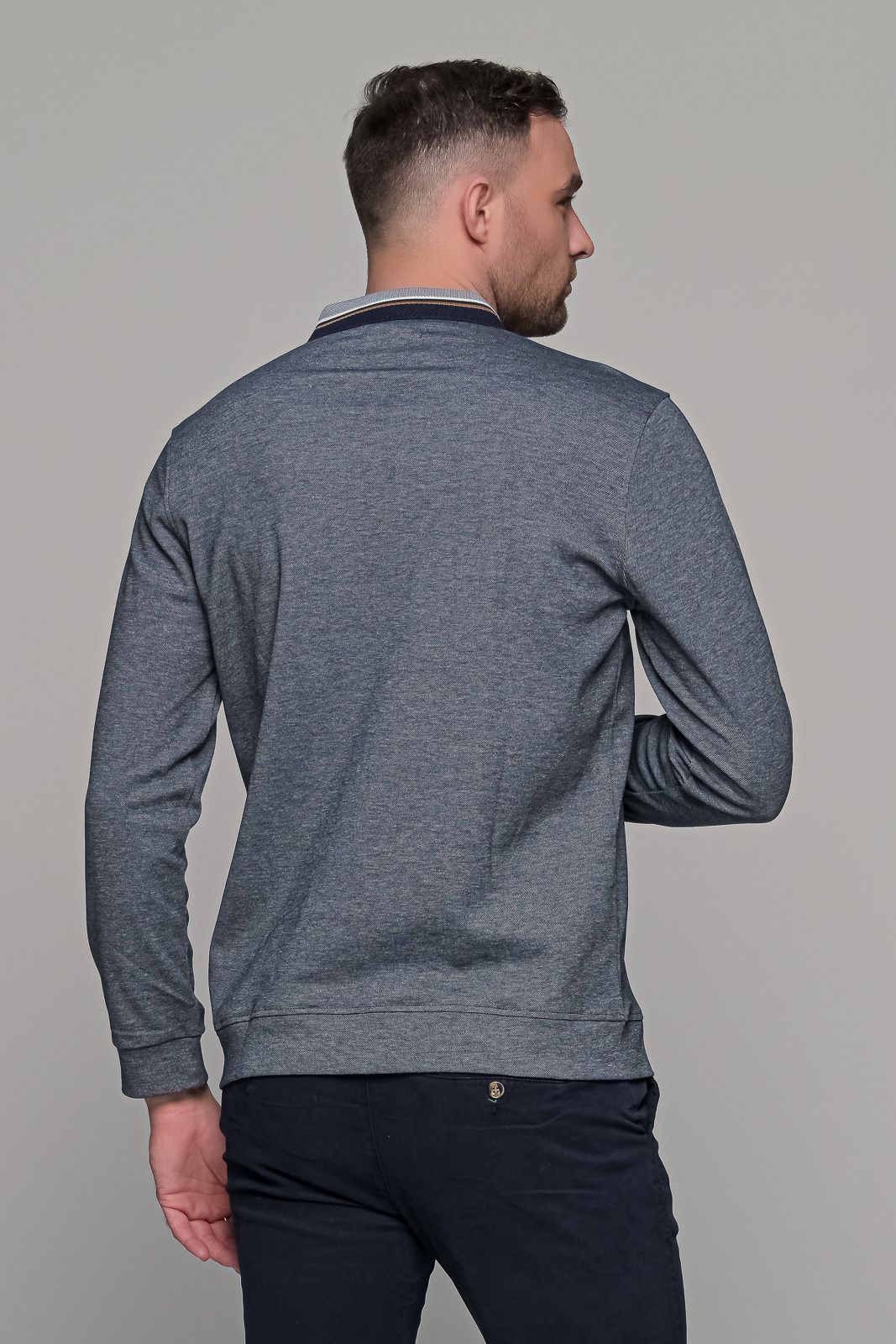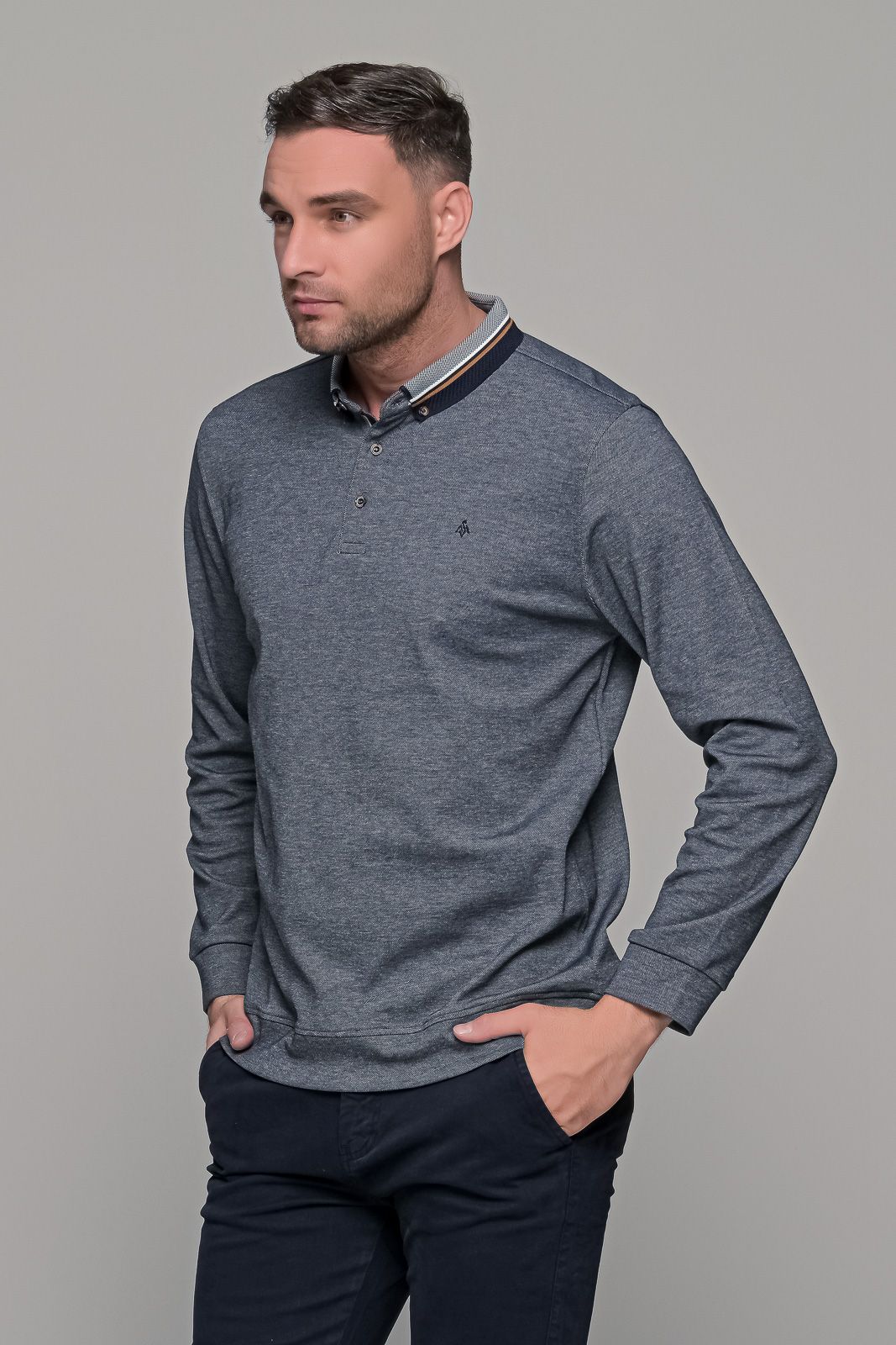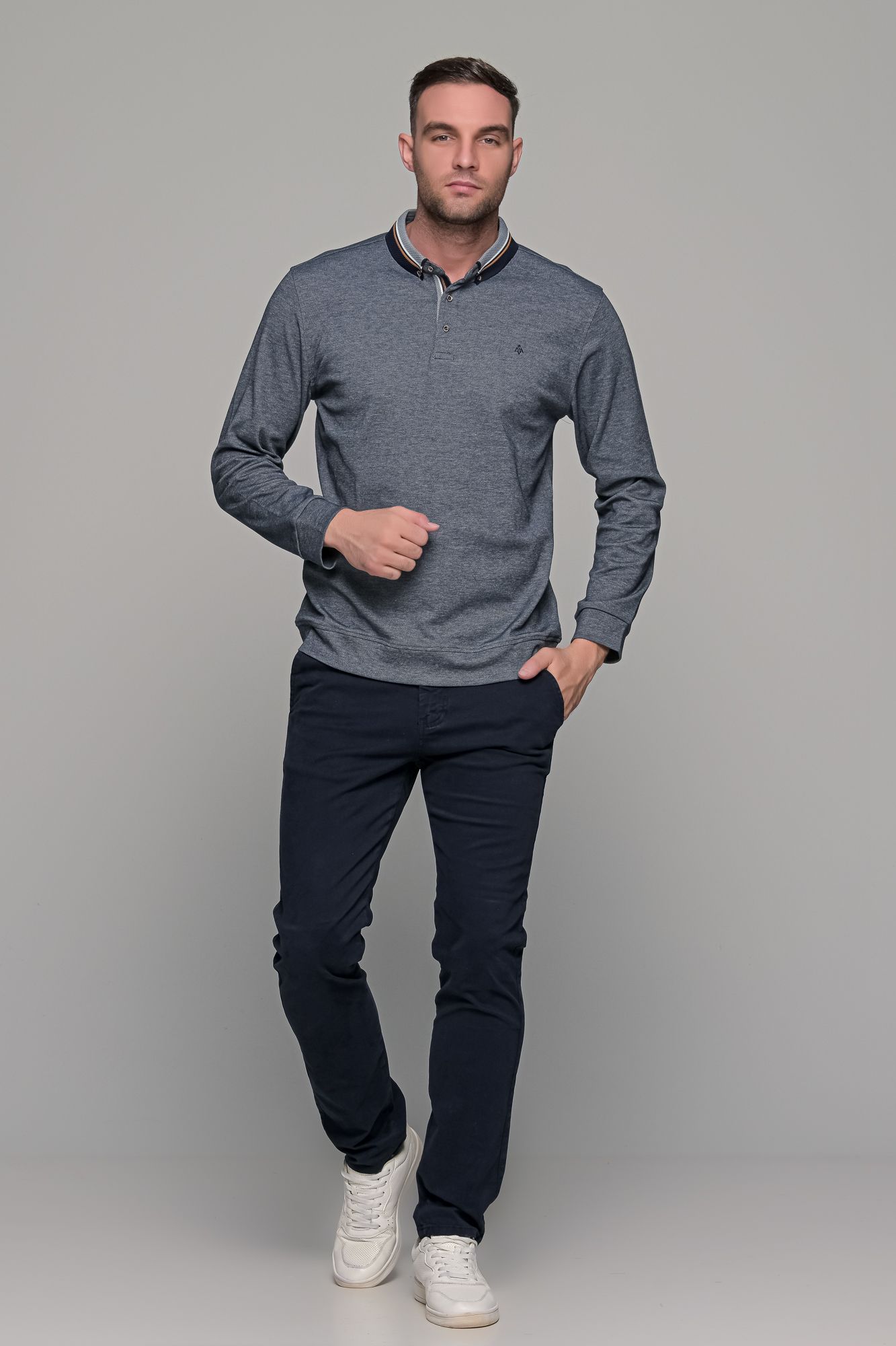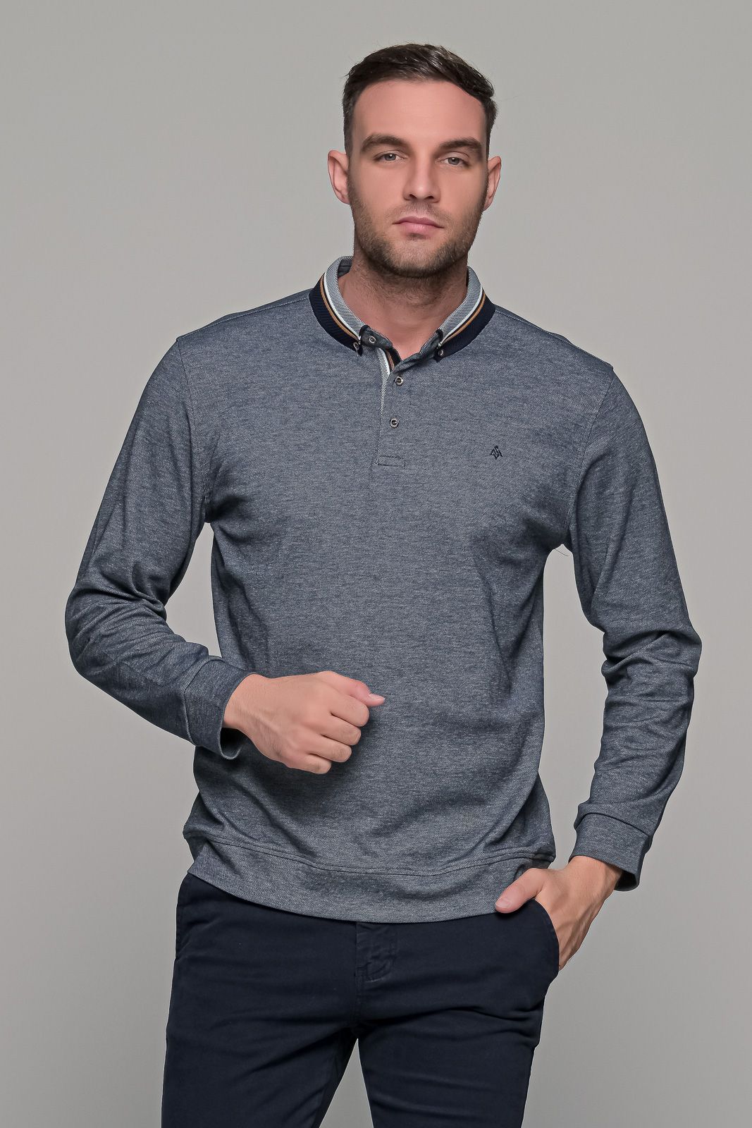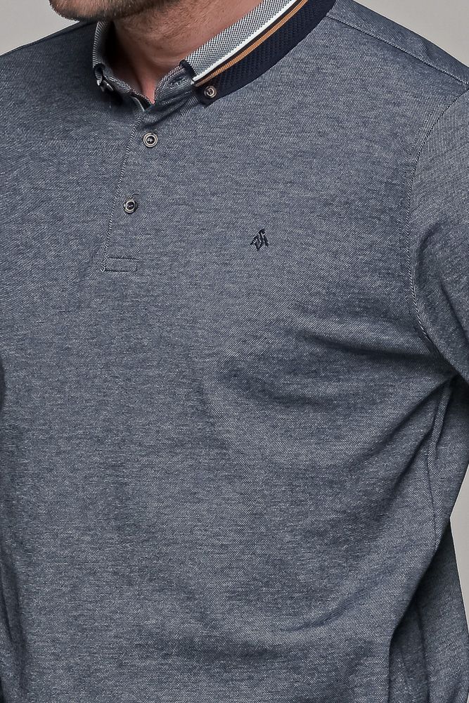 Γκρι μπλε ανδρικό πόλο με κουμπί MS και μακρύ μανίκι