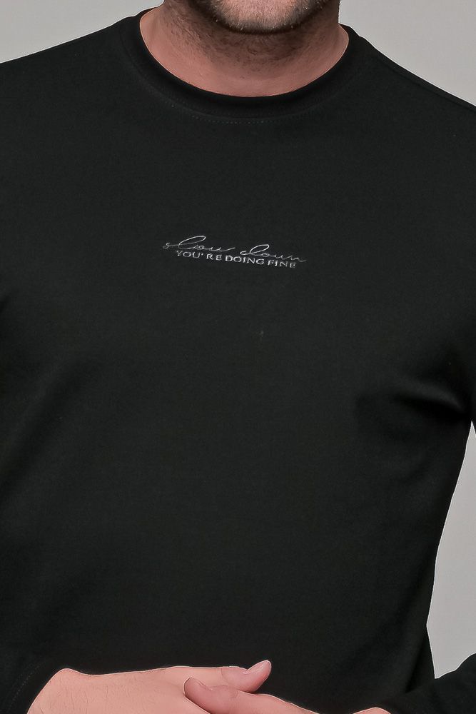 Μαύρη ανδρική μακρυμάνικη μπλούζα με ανάγλυφη διακριτική στάμπα