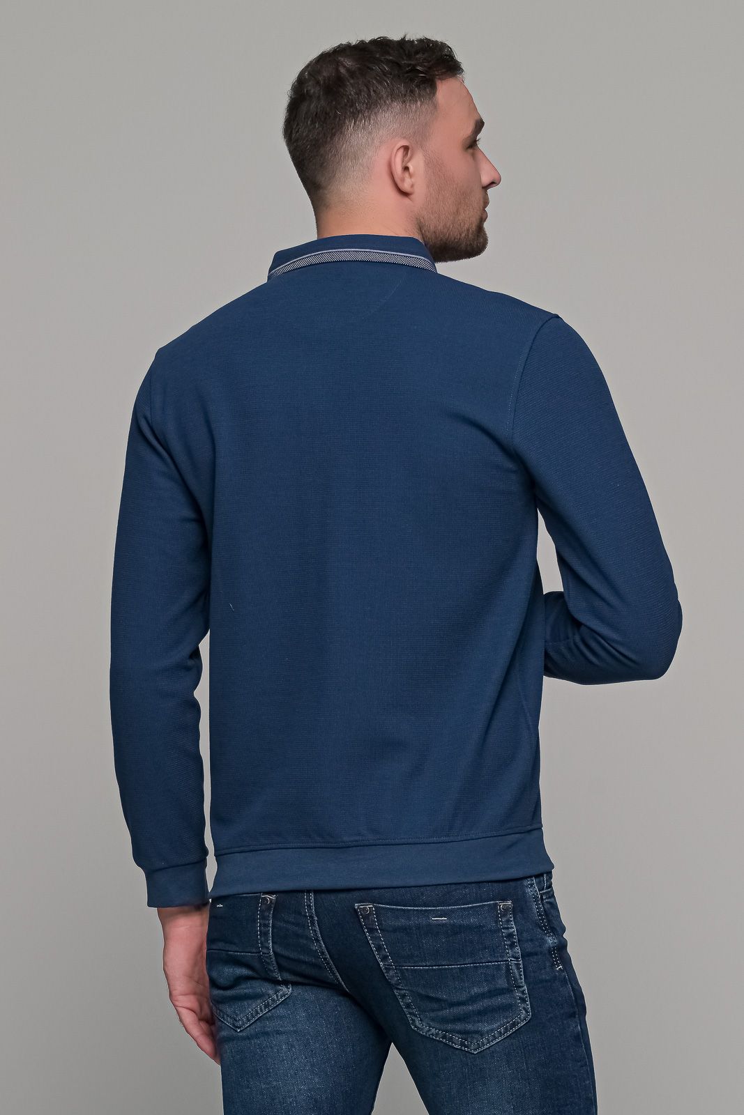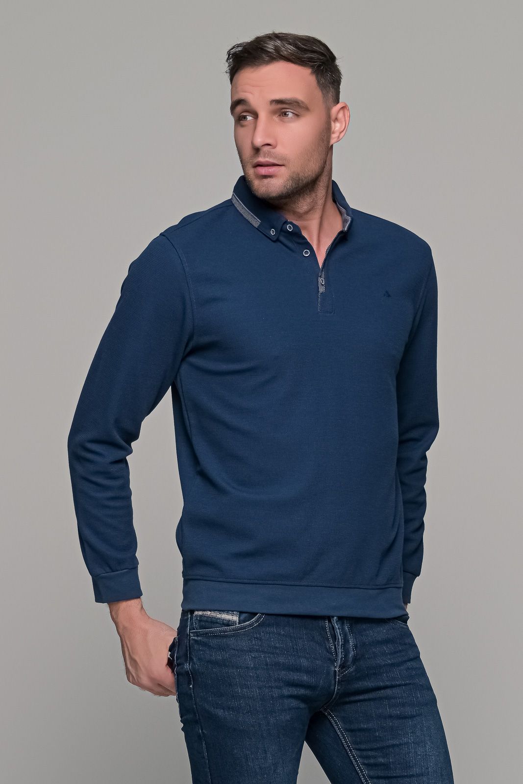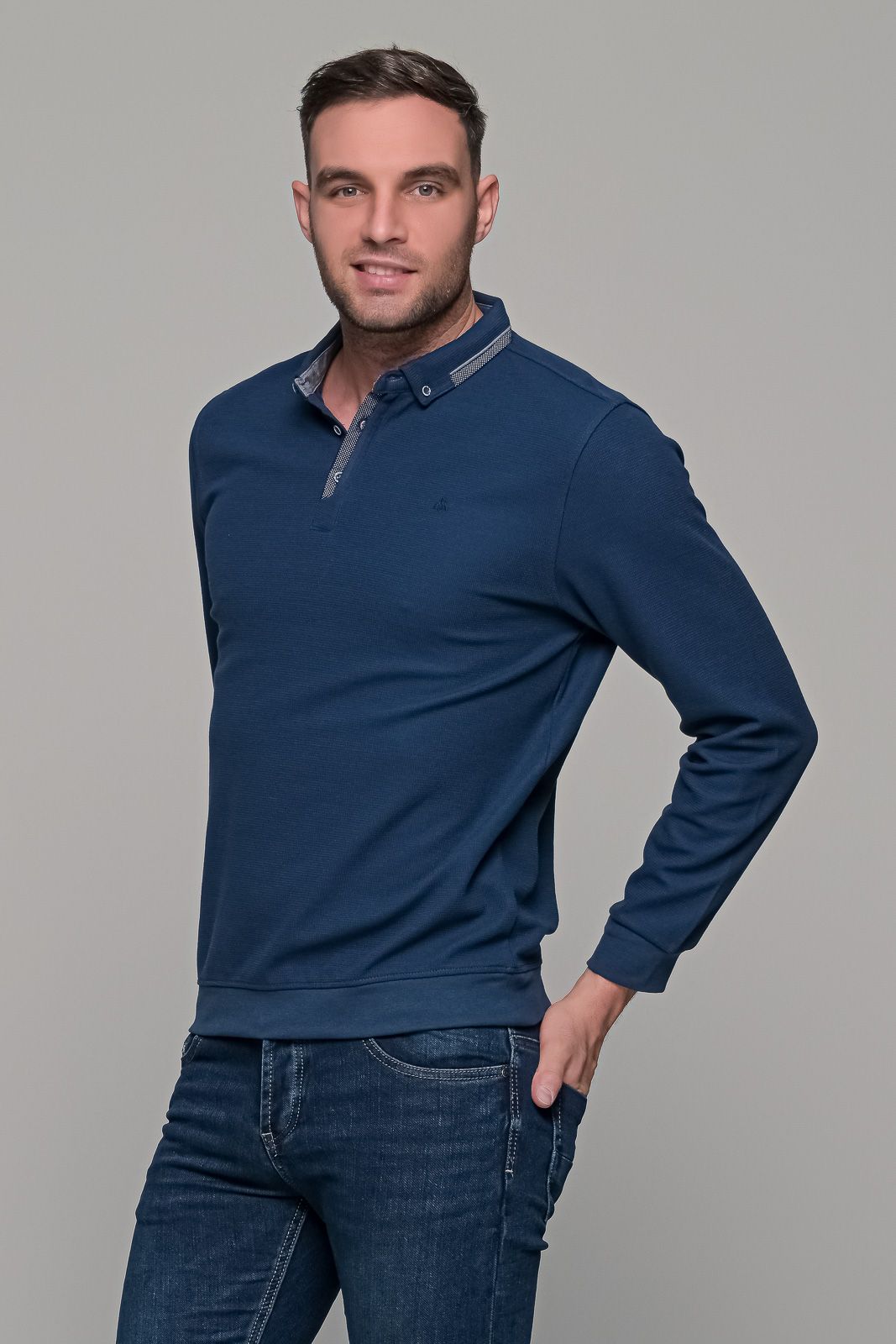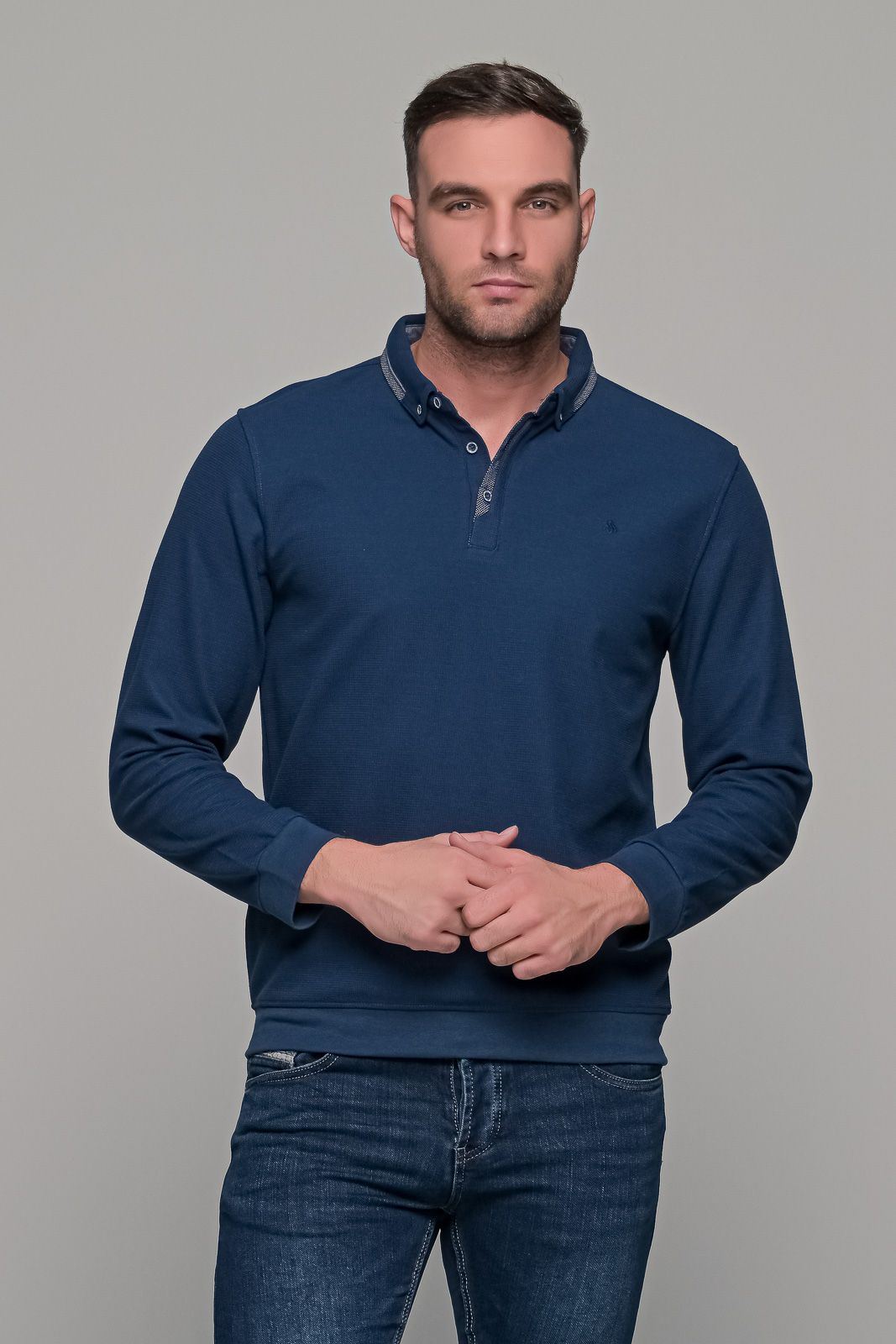 Μπλε ανδρικό πόλο με κουμπί MS και μακρύ μανίκι