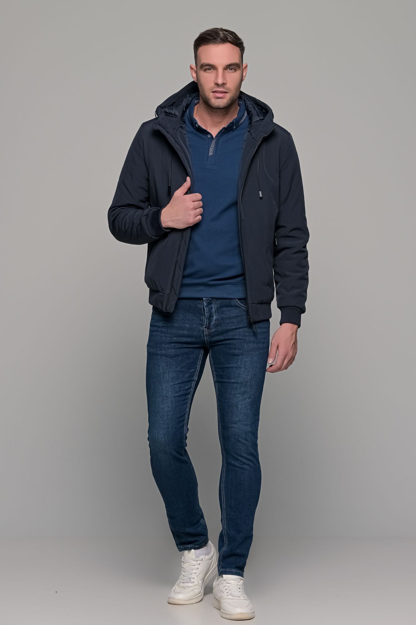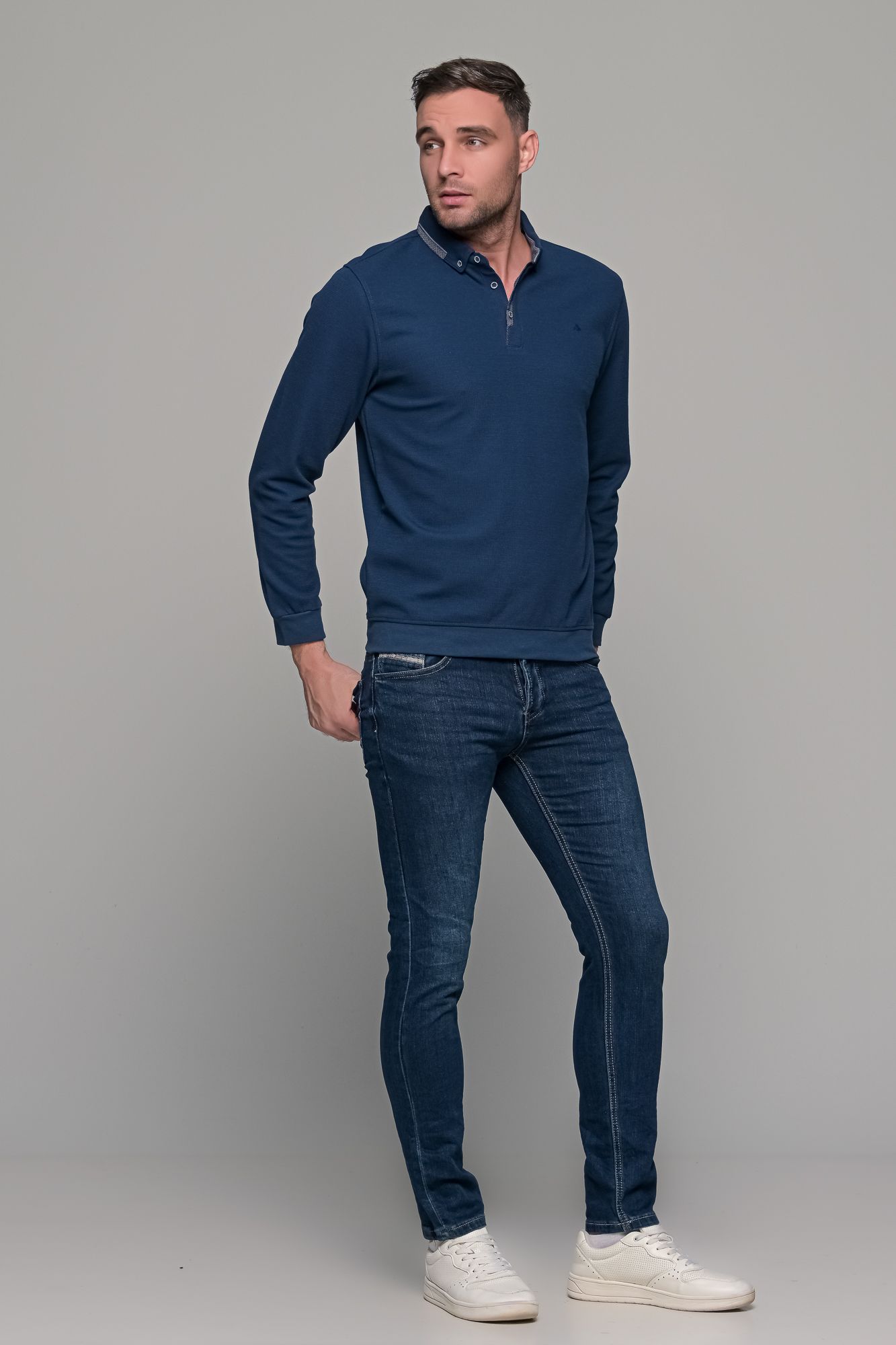 Μπλε ανδρικό πόλο μπλουζάκι με φερμουάρ MS