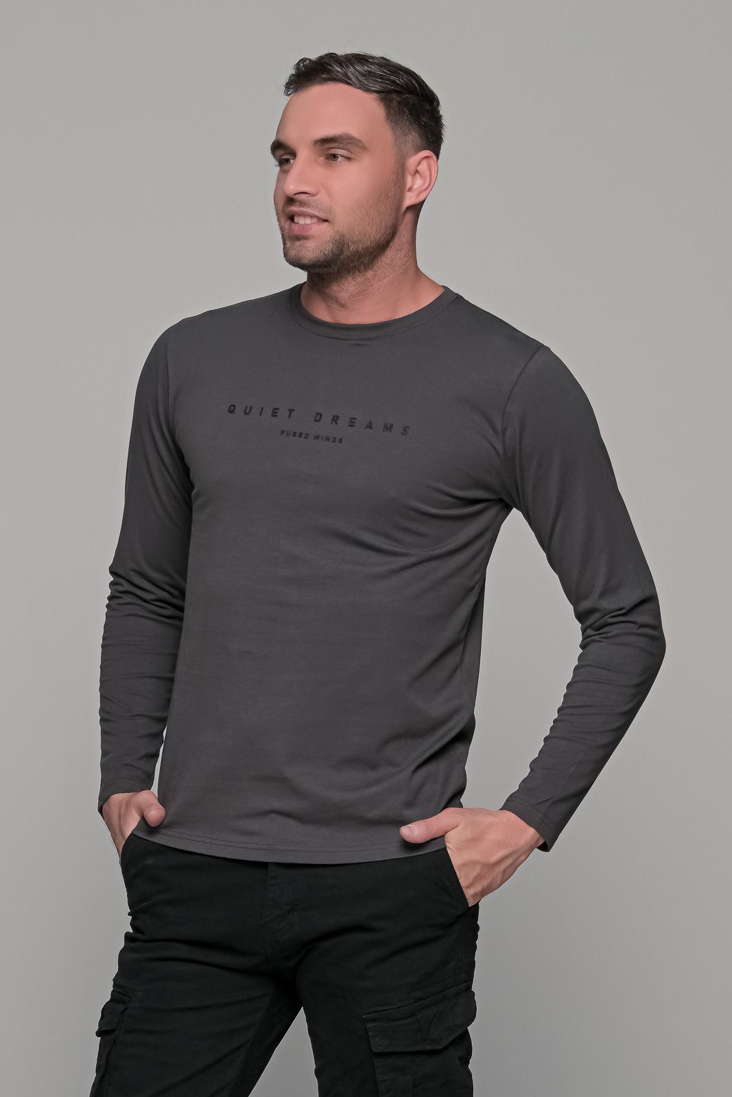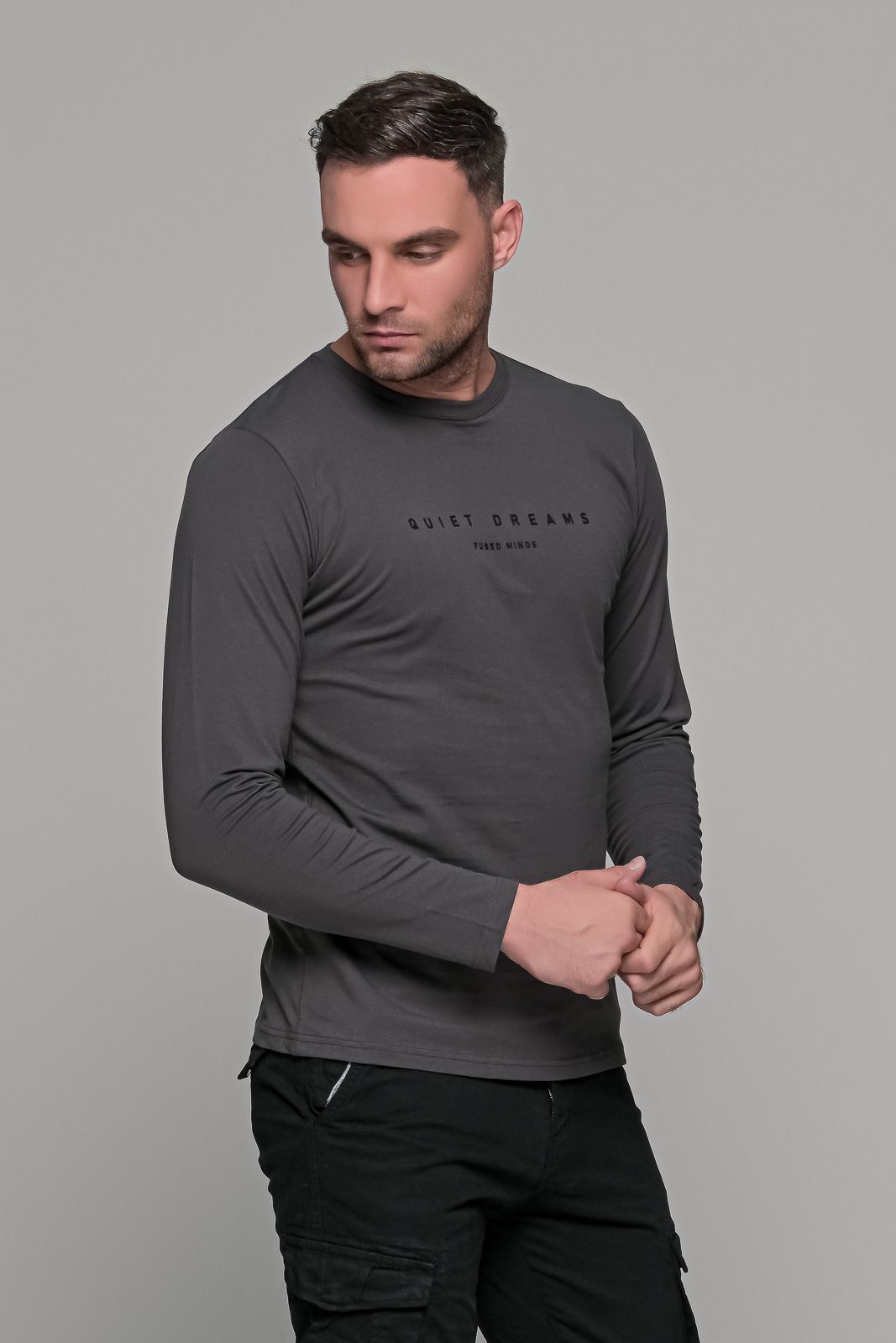 Σκούρο γκρι ανδρικό μακρυμάνικο t-shirt με στάμπα Quiet Drems