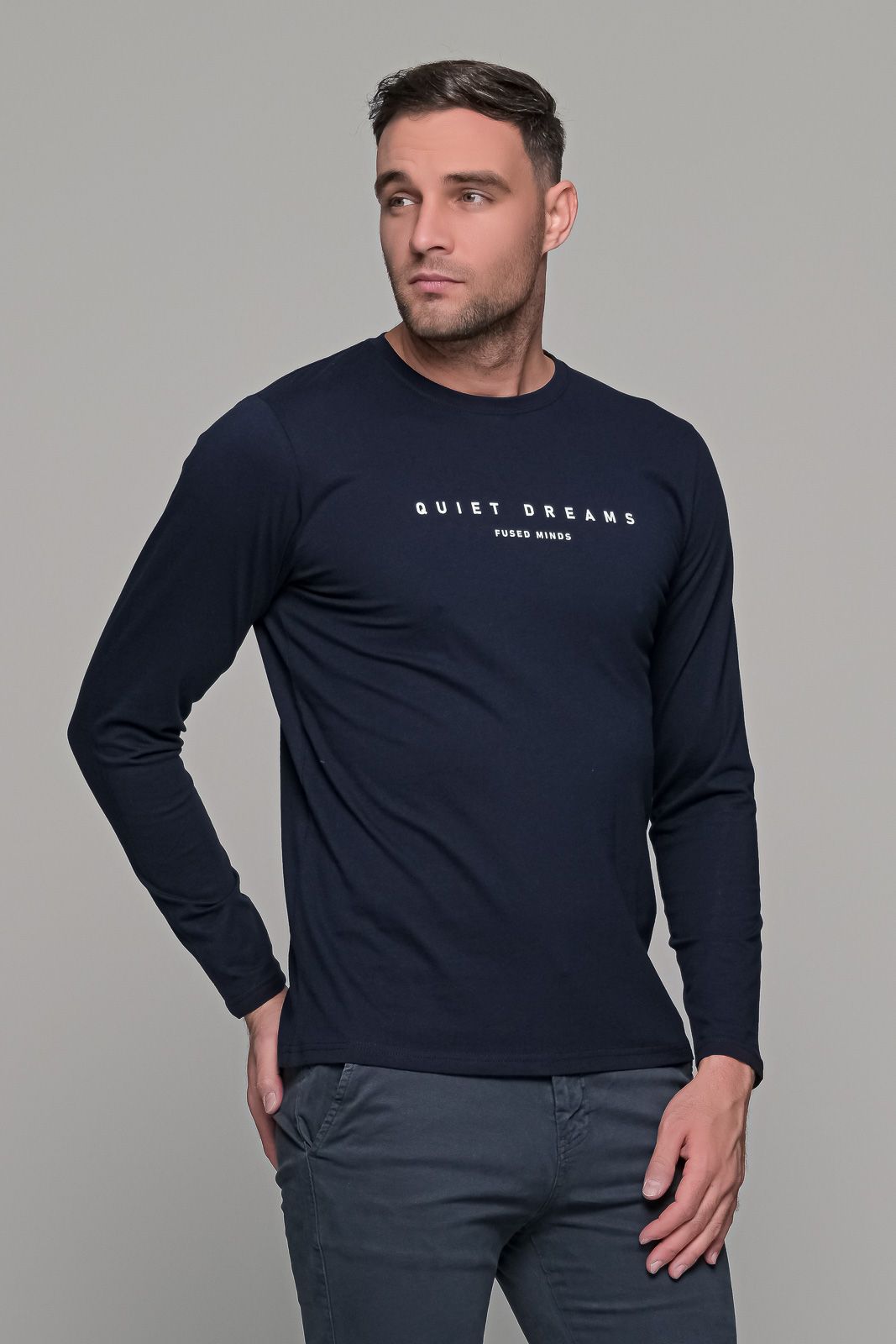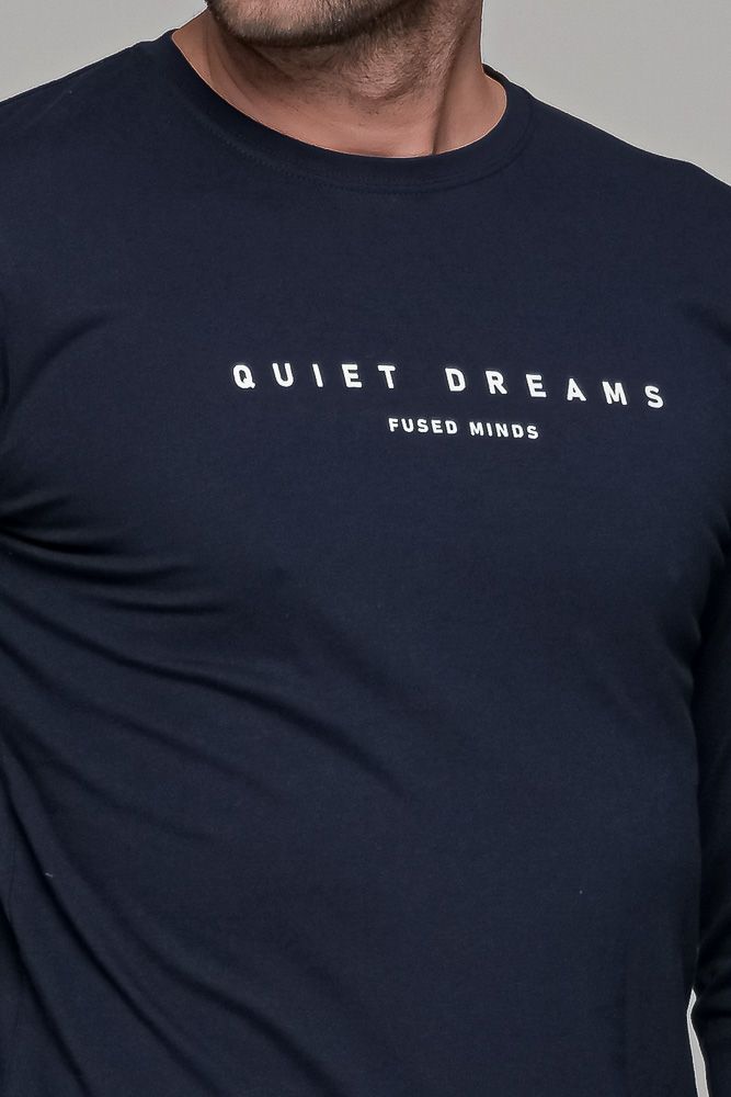 Σκούρο μπλε ανδρικό μακρυμάνικο t-shirt με στάμπα Quiet Drems