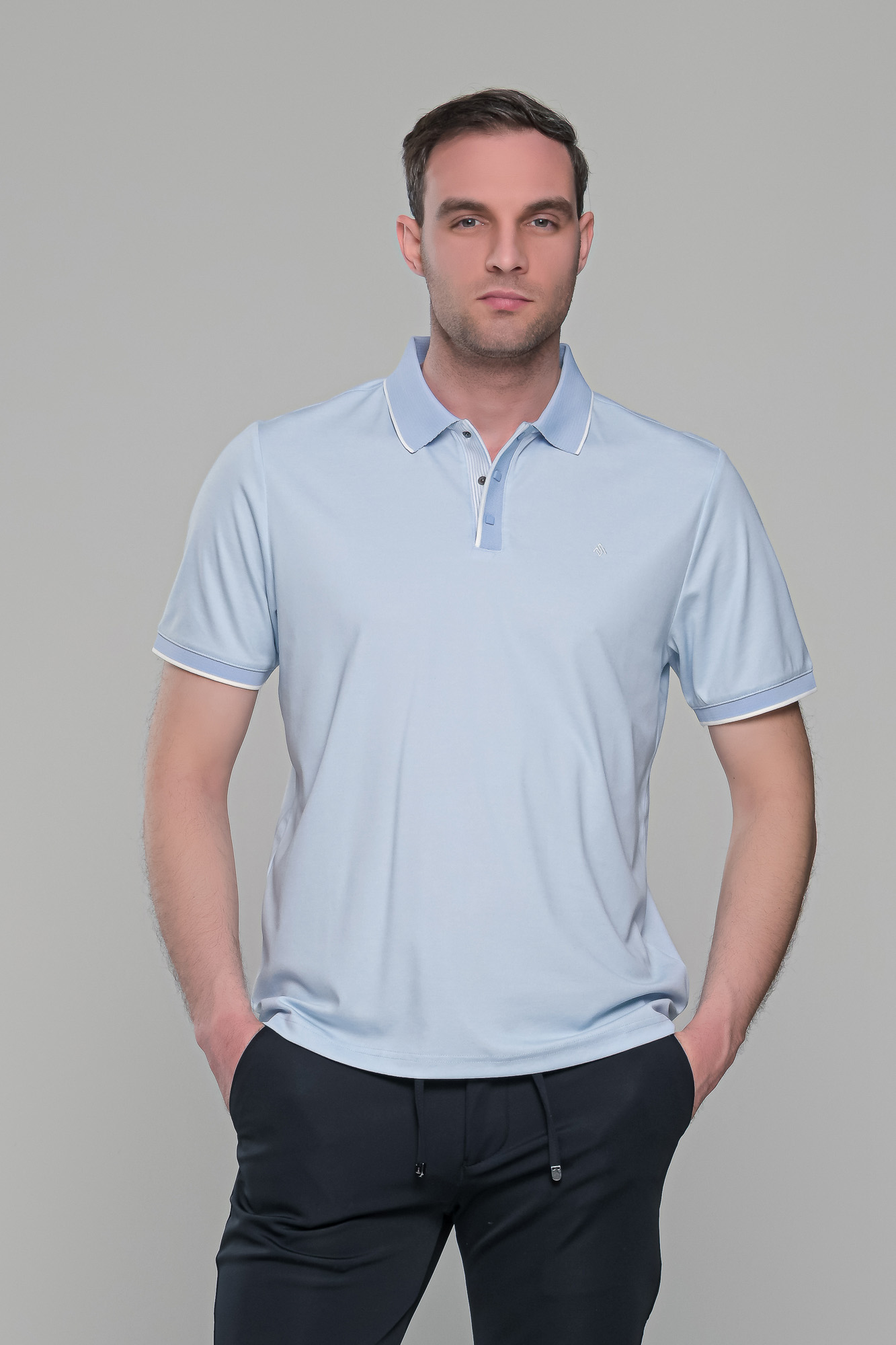 Γκρι Μπλε Ανδρικό Μπλουζάκι Πόλο με Κουμπιά και Λάστιχο