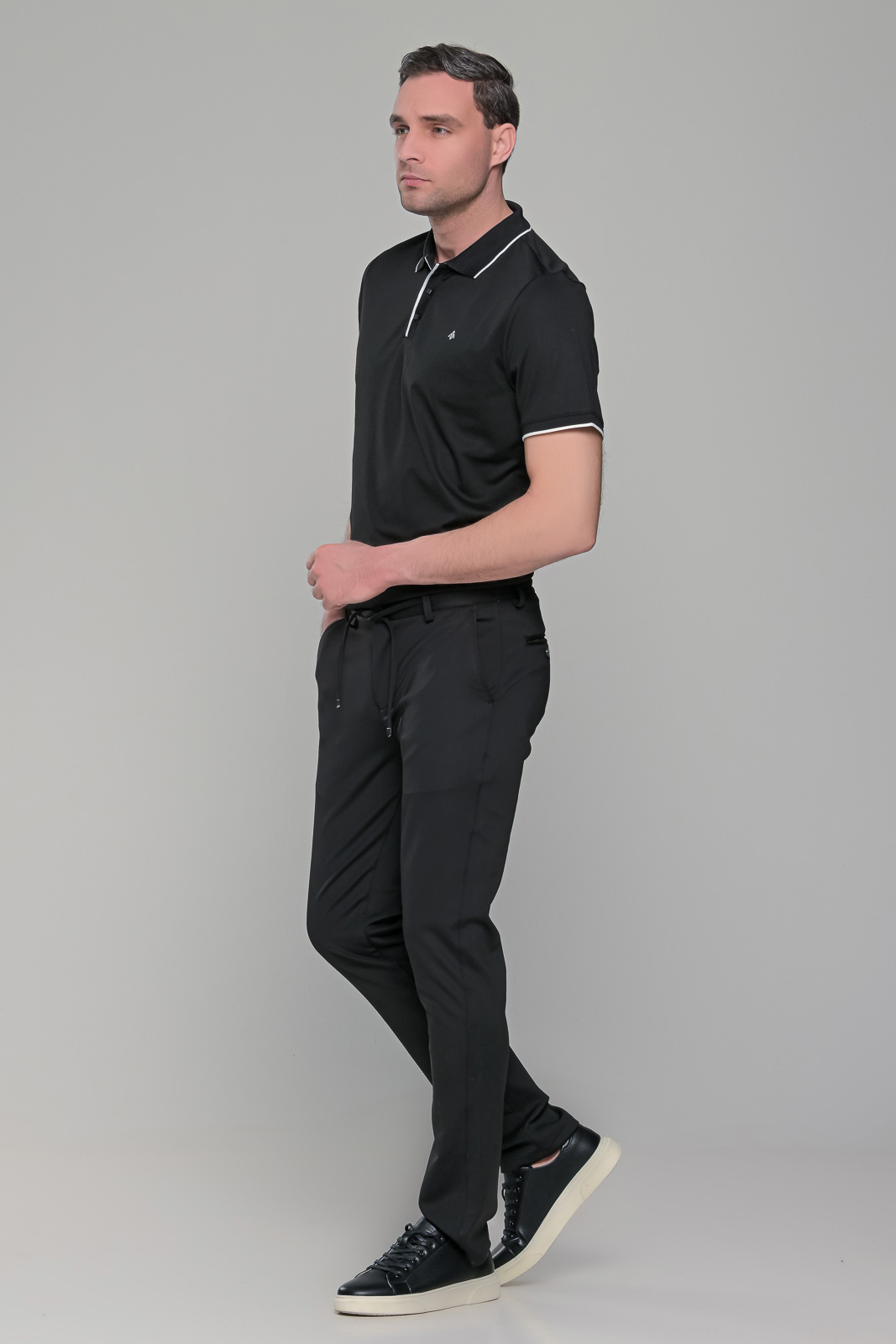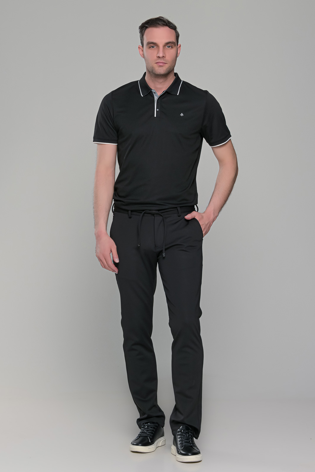 Ανδρικό μαύρο πόλο μπλουζάκι MS με κοντό μανίκι – Slim Fit