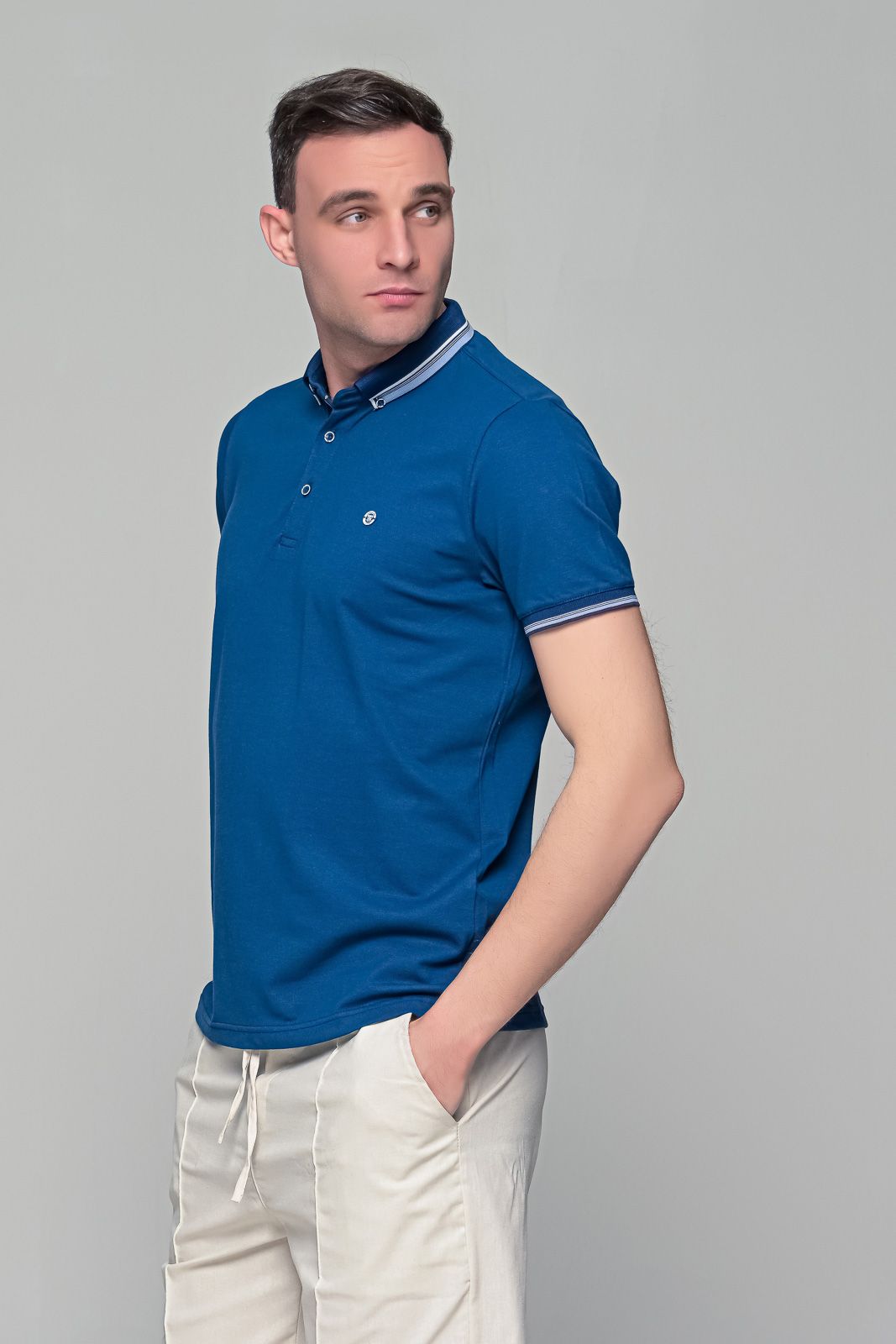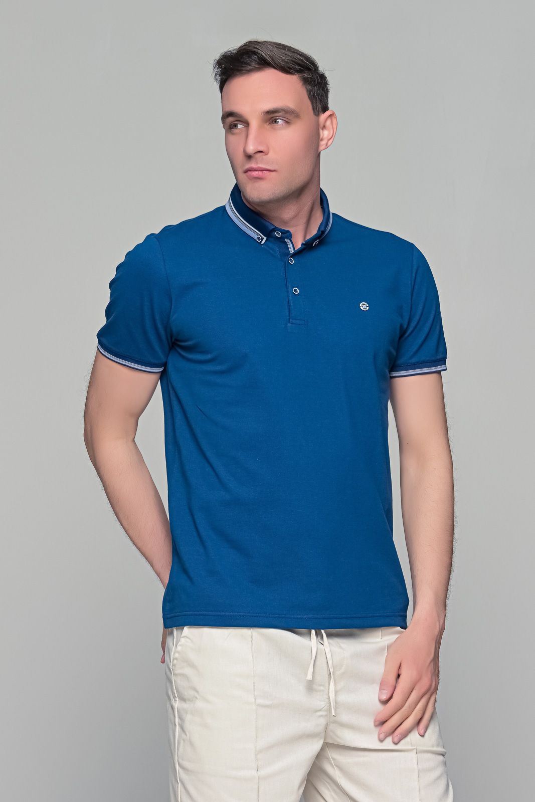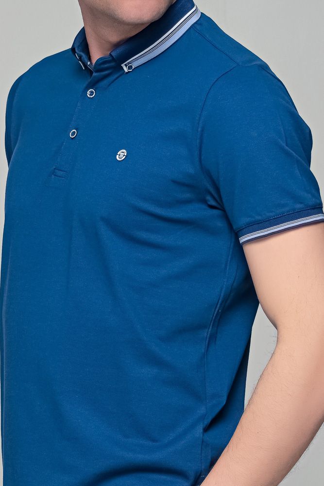 Μπλε Ραφ ανδρικό πόλο μπλουζάκι MS με κουμπί στο γιακά – Slim Fit