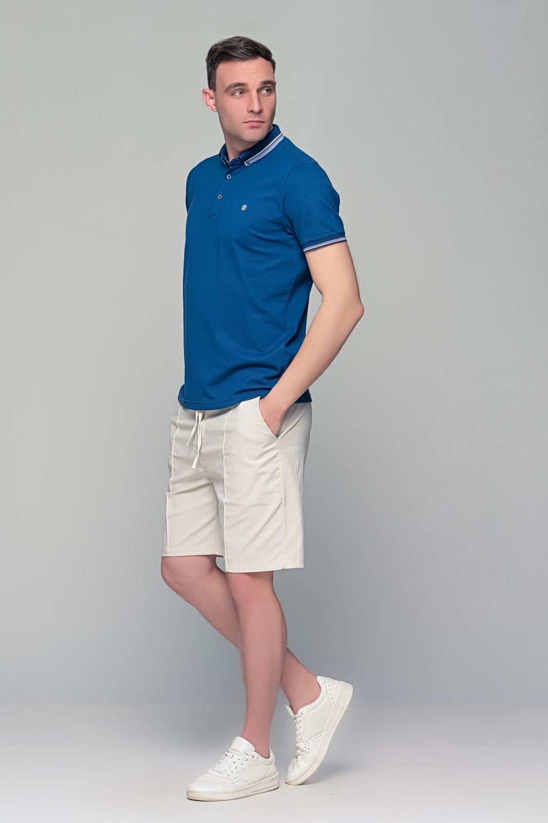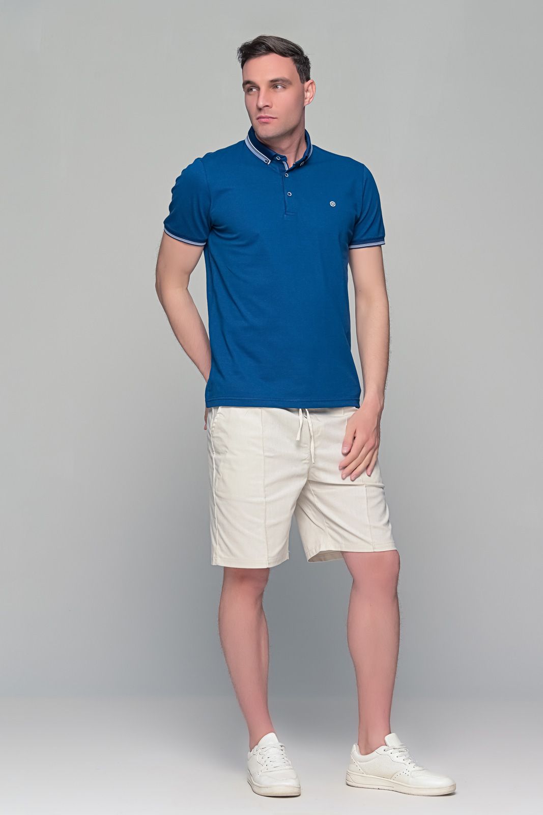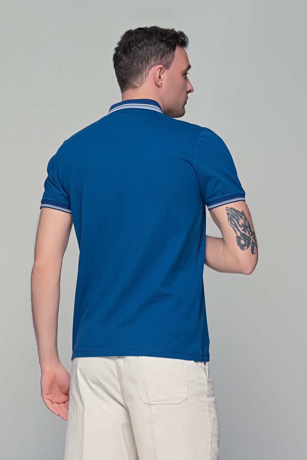Μπλε Ραφ ανδρικό πόλο μπλουζάκι MS με κουμπί στο γιακά – Slim Fit