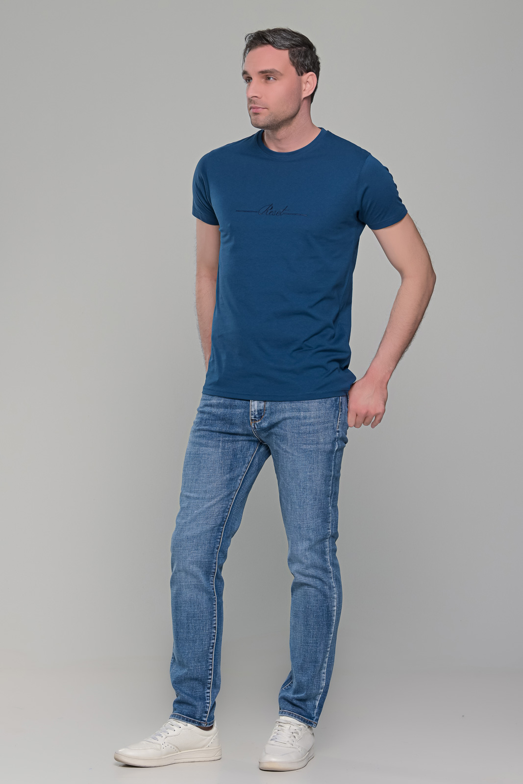 Μπλε κοντομάνικο t-shirt ανδρικό μπλουζάκι με στάμπα