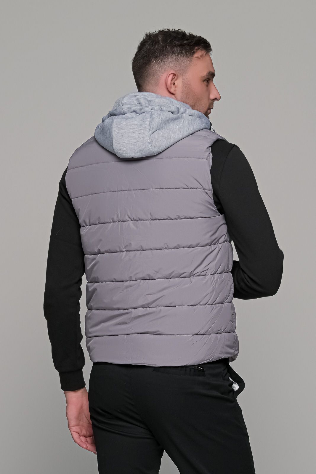 Γκρι αμάνικο ανδρικό μπουφάν γιλέκο με κουκούλα PAPARAZZI