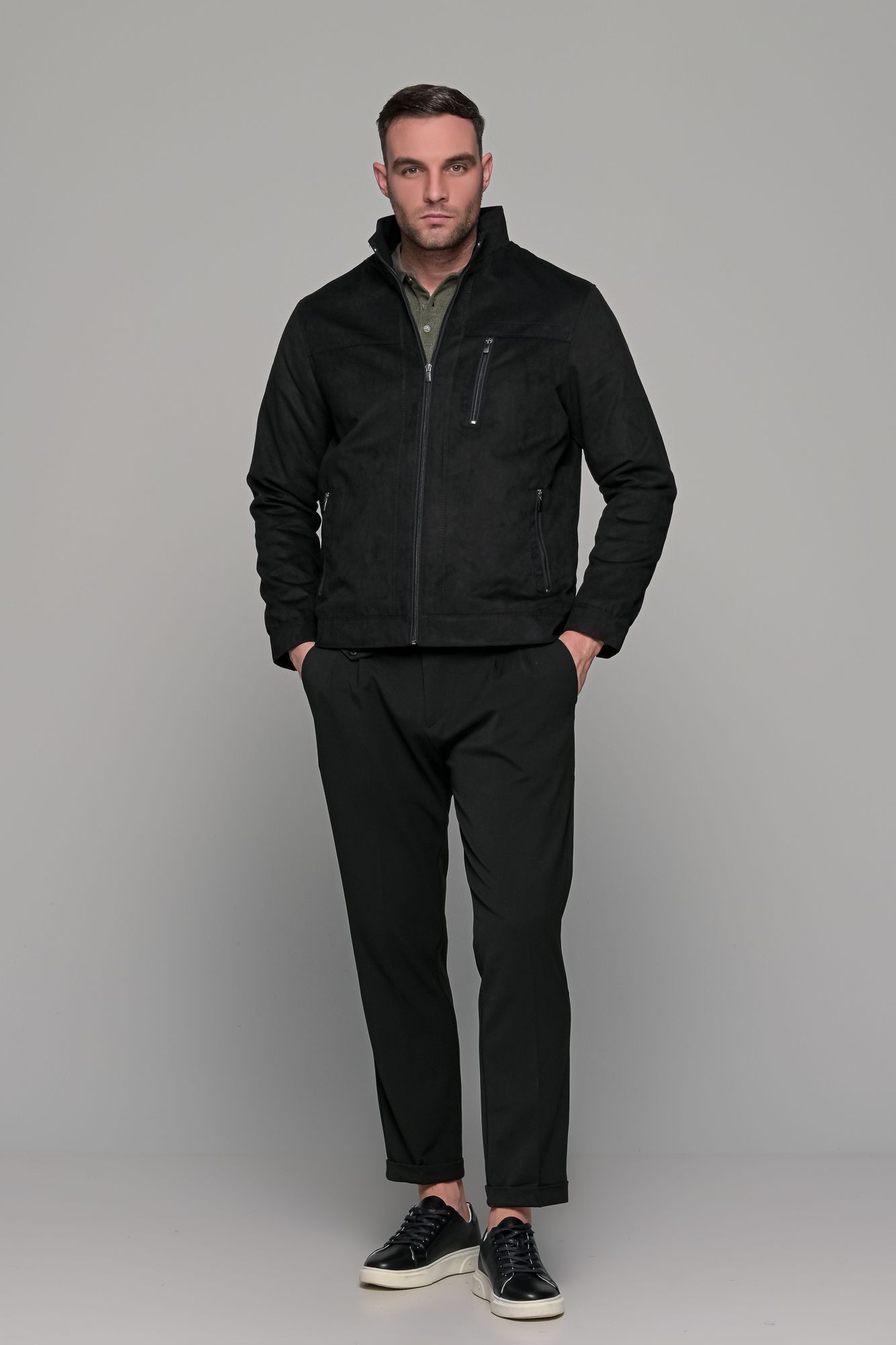 Μαύρο ανδρικό μπουφάν τύπου suede – Slim fit
