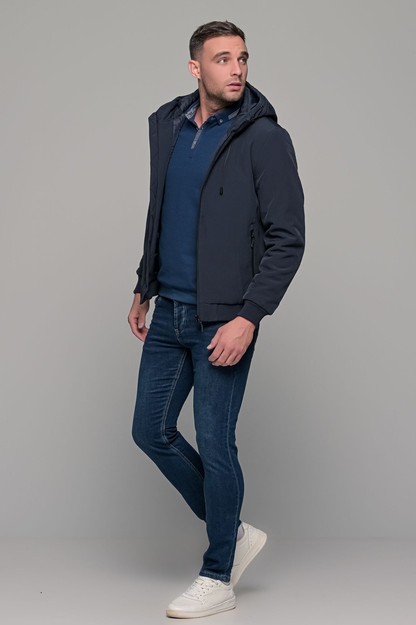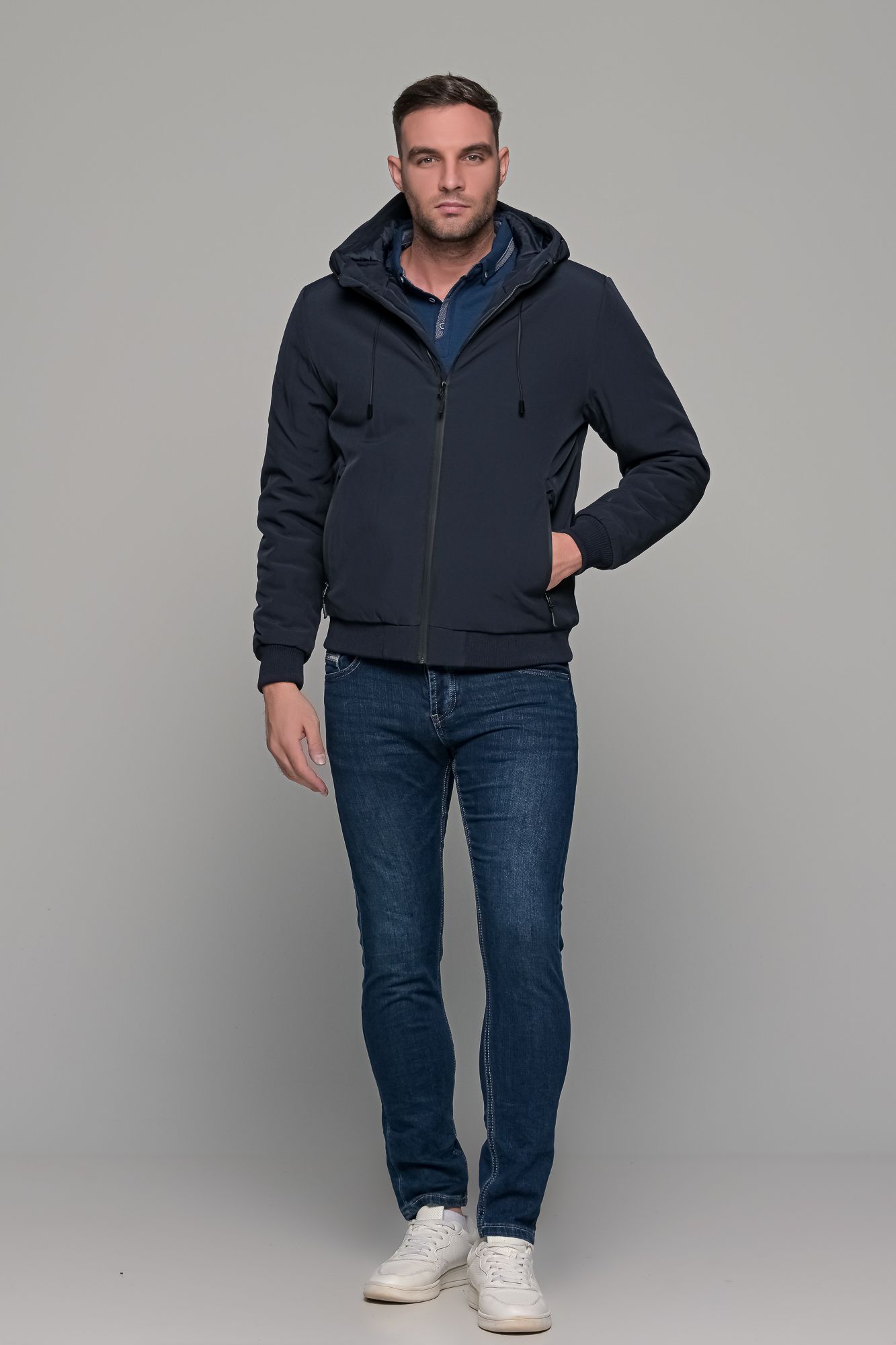 Μπλε-navy αδιάβροχο ανδρικό Mπουφάν με κουκούλα και εσωτερική επένδυση. Κατάλληλο για τους χειμερινούς μήνες. Η γραμμή του είναι κανονική (regular fit) οπότε επιλέγετε το μέγεθος που φοράτε συνήθως.