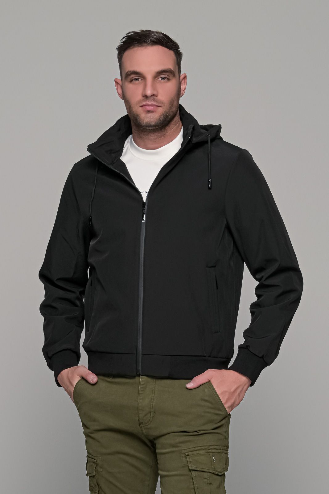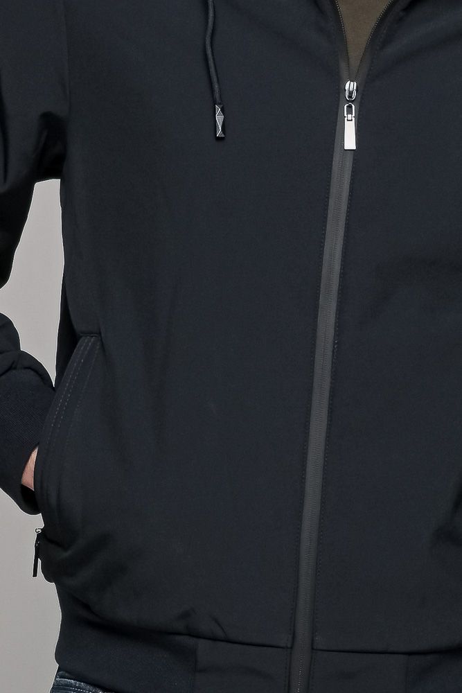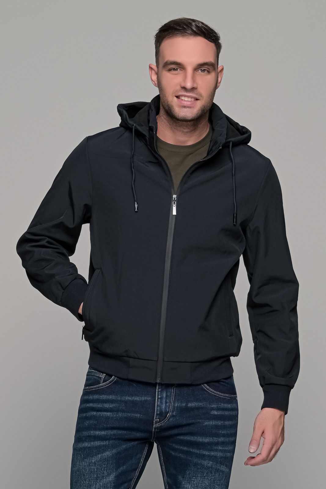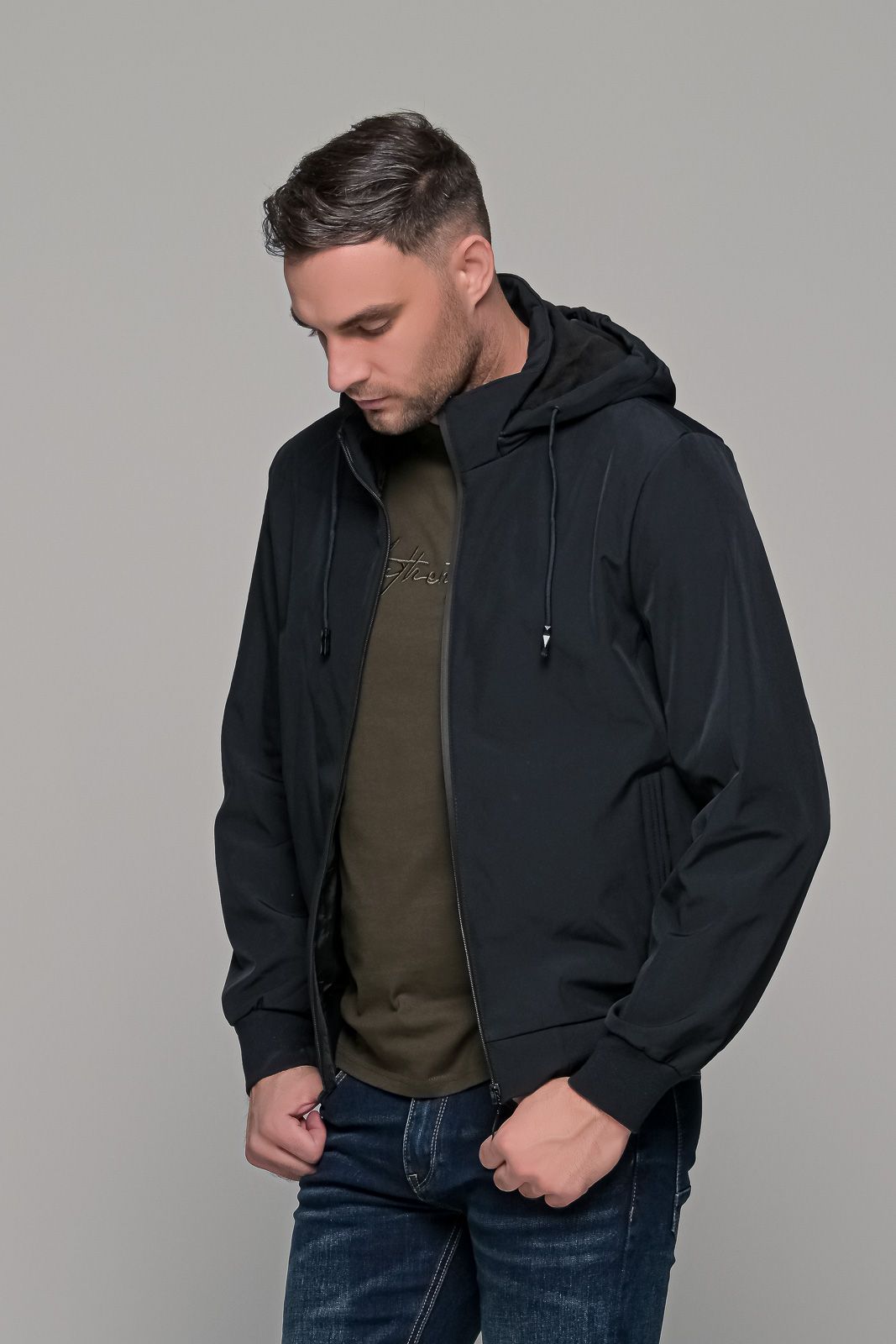 Navy φθινοπωρινό αδιάβροχο ανδρικό κοντό bomber μπουφάν με κουκούλα που αφαιρείται. Η γραμμή του είναι στενή (slim fit). Συστήνεται η αγορά ενός μεγέθους μεγαλύτερο από αυτό που φοράτε συνήθως.