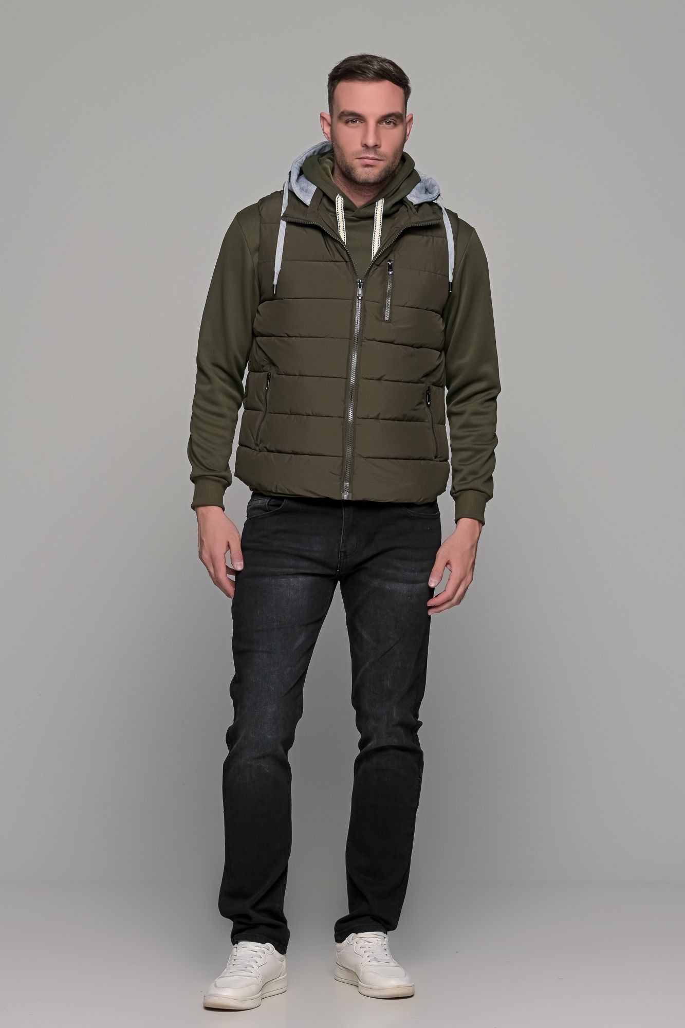 Πράσινο – Χακί αμάνικο ανδρικό μπουφάν γιλέκο PAPARAZZI με κουκούλα, κατάλληλο για όλες τις ώρες. Διαθέτει κουκούλα σε γκρι χρώμα η οποία μπορεί να αφαιρεθεί. Έχει δυο εξωτερικές τσέπες με φερμουάρ στο πλάι. Το ύφασμα του είναι naylon αδιάβροχο. Τα αμάνικα μπουφάν τύπου γιλέκο είναι η τελευταία τάση της μόδας τα τελευταία χρόνια, καθώς μπορεί να φορεθεί με πλεκτό ή φούτερ τους πιο κρύους μήνες ή ακόμα και με κοντομάνικο t-shirt την άνοιξη! Η γραμμή του είναι κανονική και η εφαρμογή του στενή (slim fit) οπότε προτείνεται η επιλογή του μεγέθους που φοράτε συνήθως.