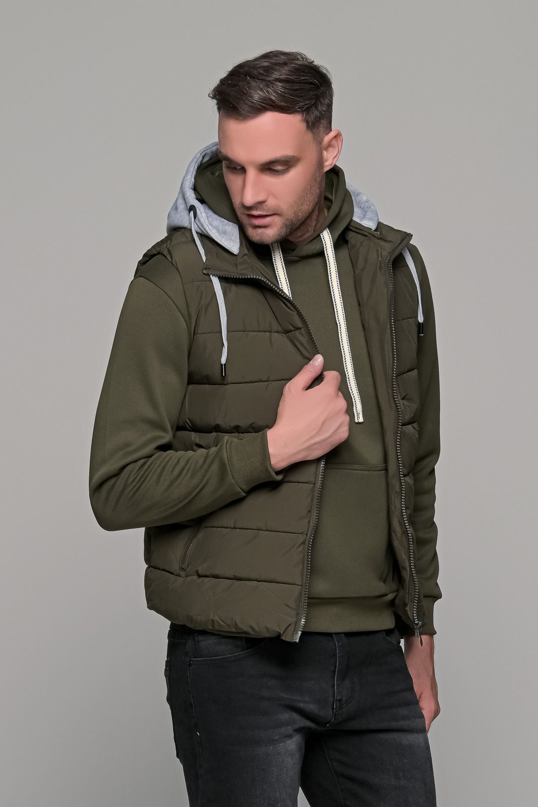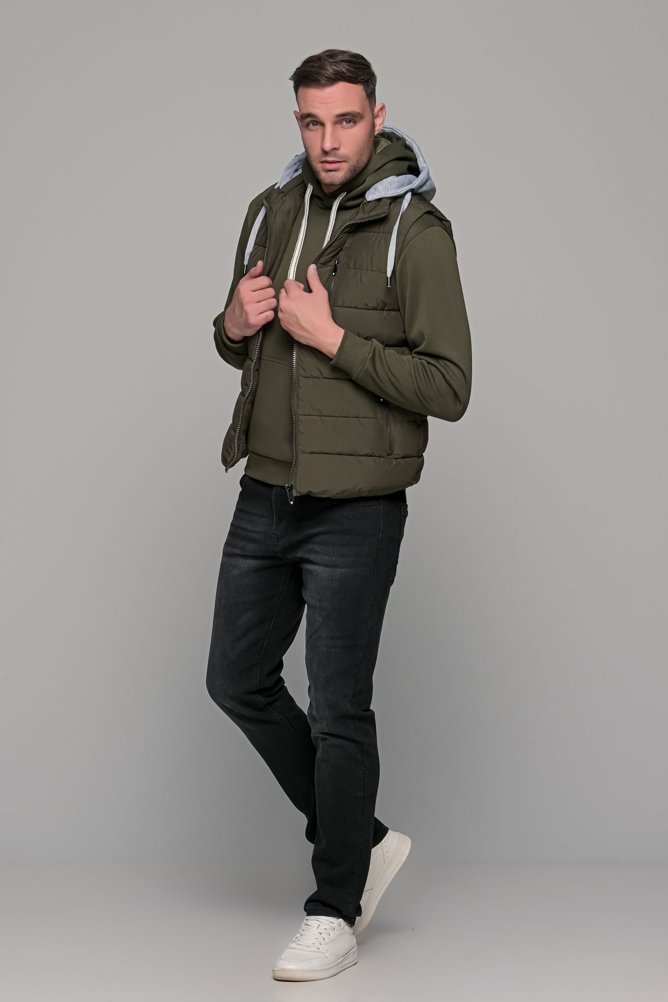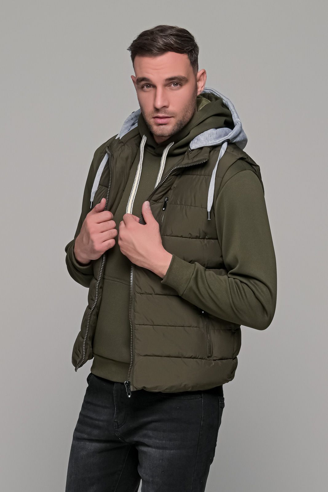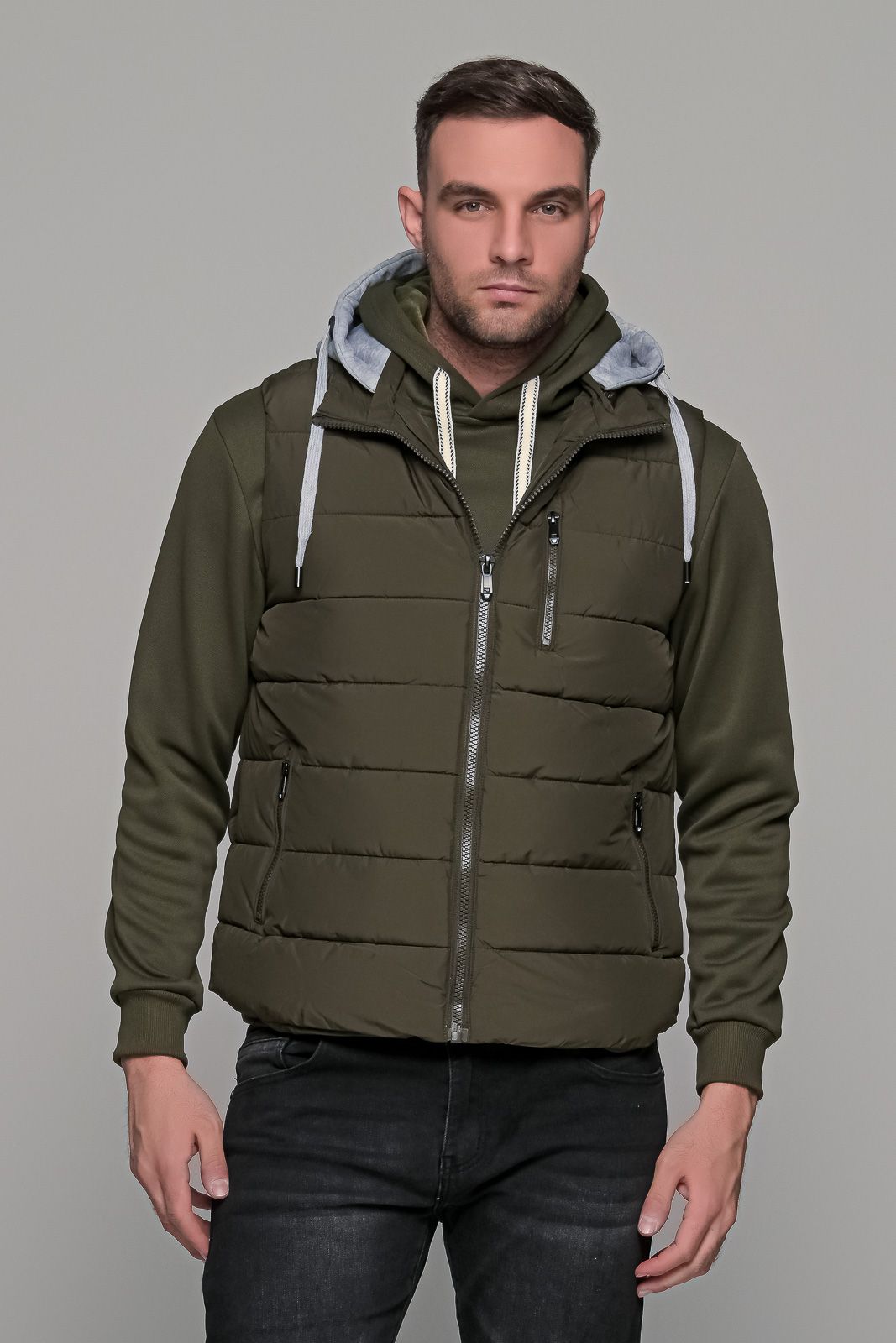 Πράσινο – Χακί αμάνικο ανδρικό μπουφάν γιλέκο με κουκούλα PAPARAZZI