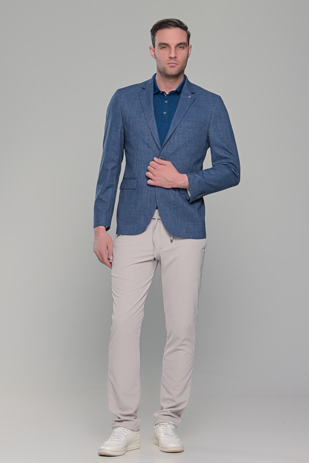 Ανδρικό σακάκι σε μπλε indigo χρώμα κατάλληλο για το καλοκαίρι. Η γραμμή του είναι κανονική και η εφαρμογή του είναι στενή (slim fit) οπότε συστήνεται η αγορά του μεγέθους που φοράτε συνήθως στα σακάκια και στα κοστούμια.