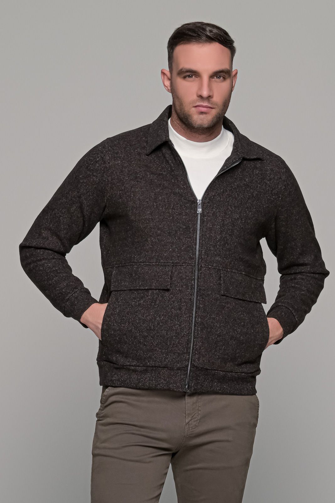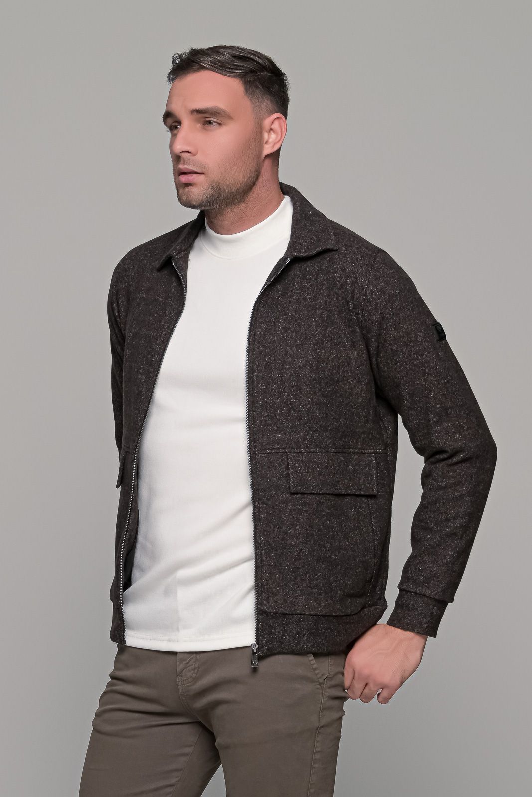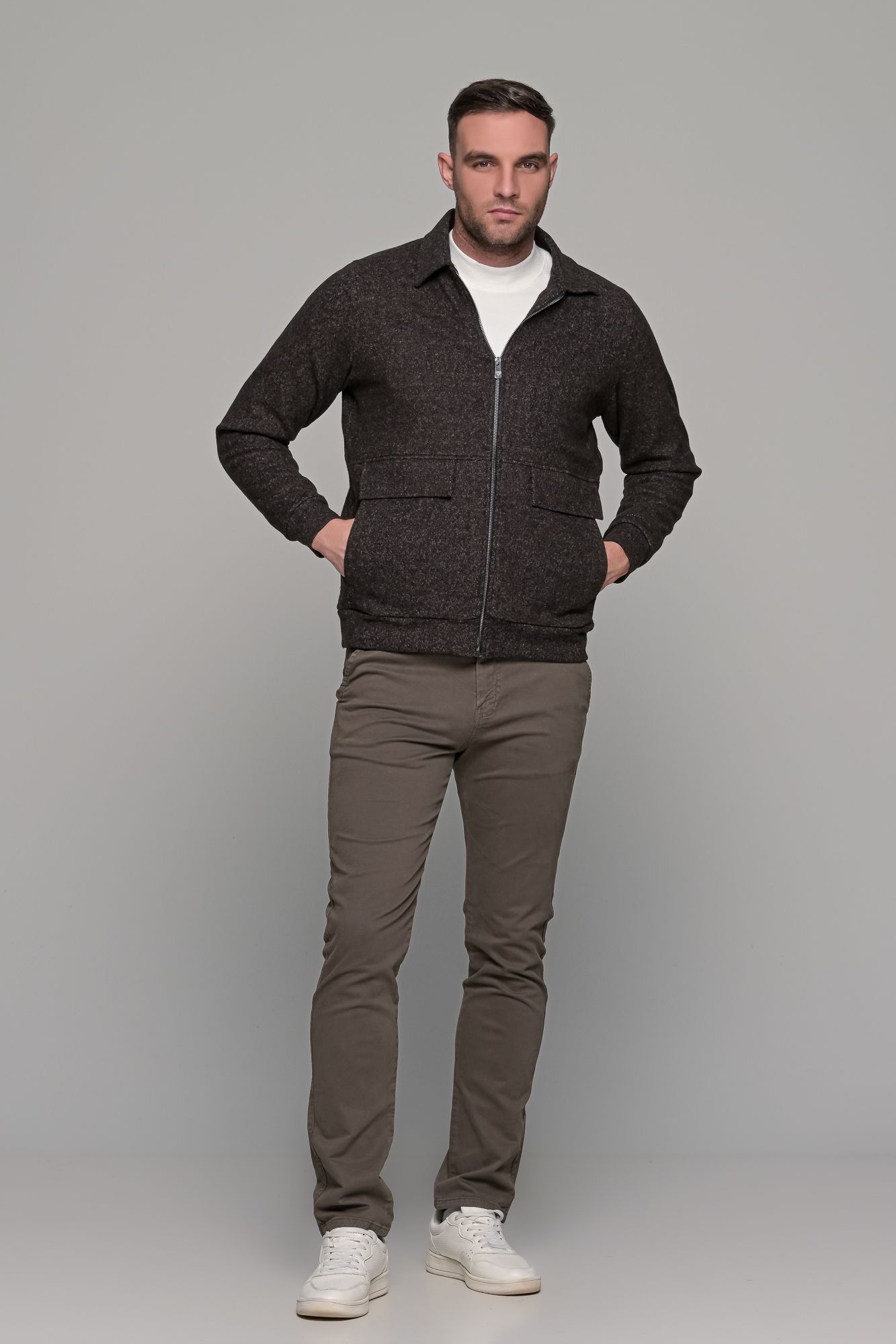 Καφέ ανδρική ζακέτα-jacket με φερμουάρ – normal fit