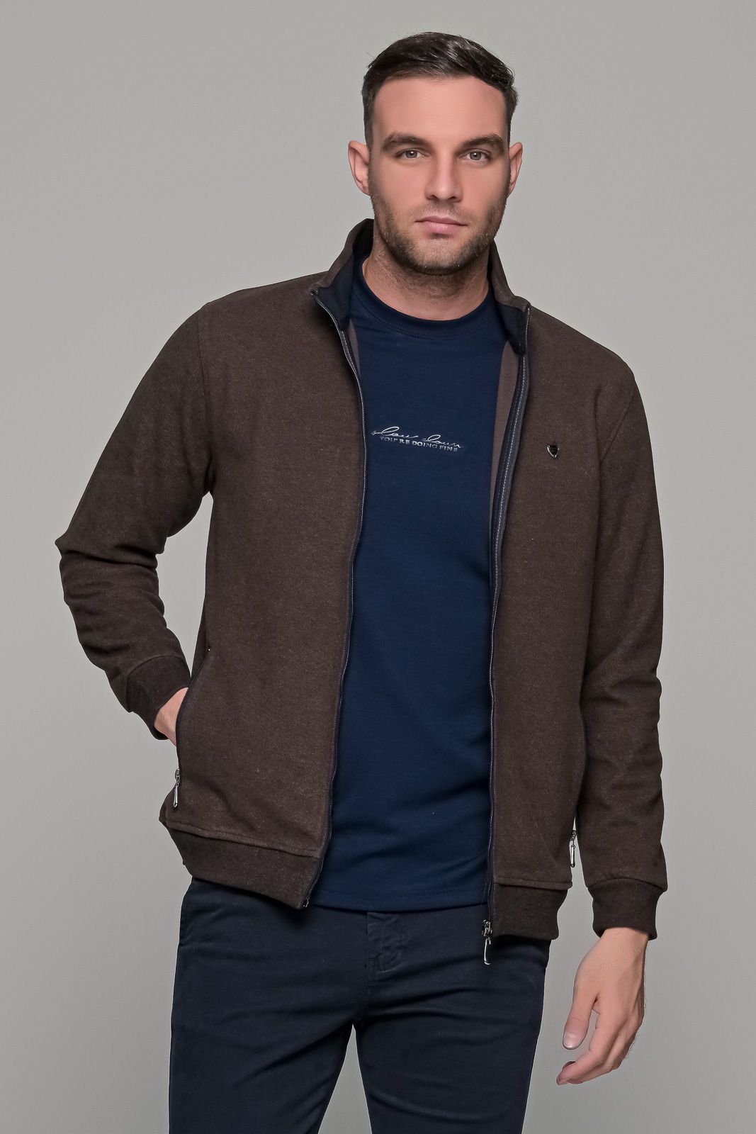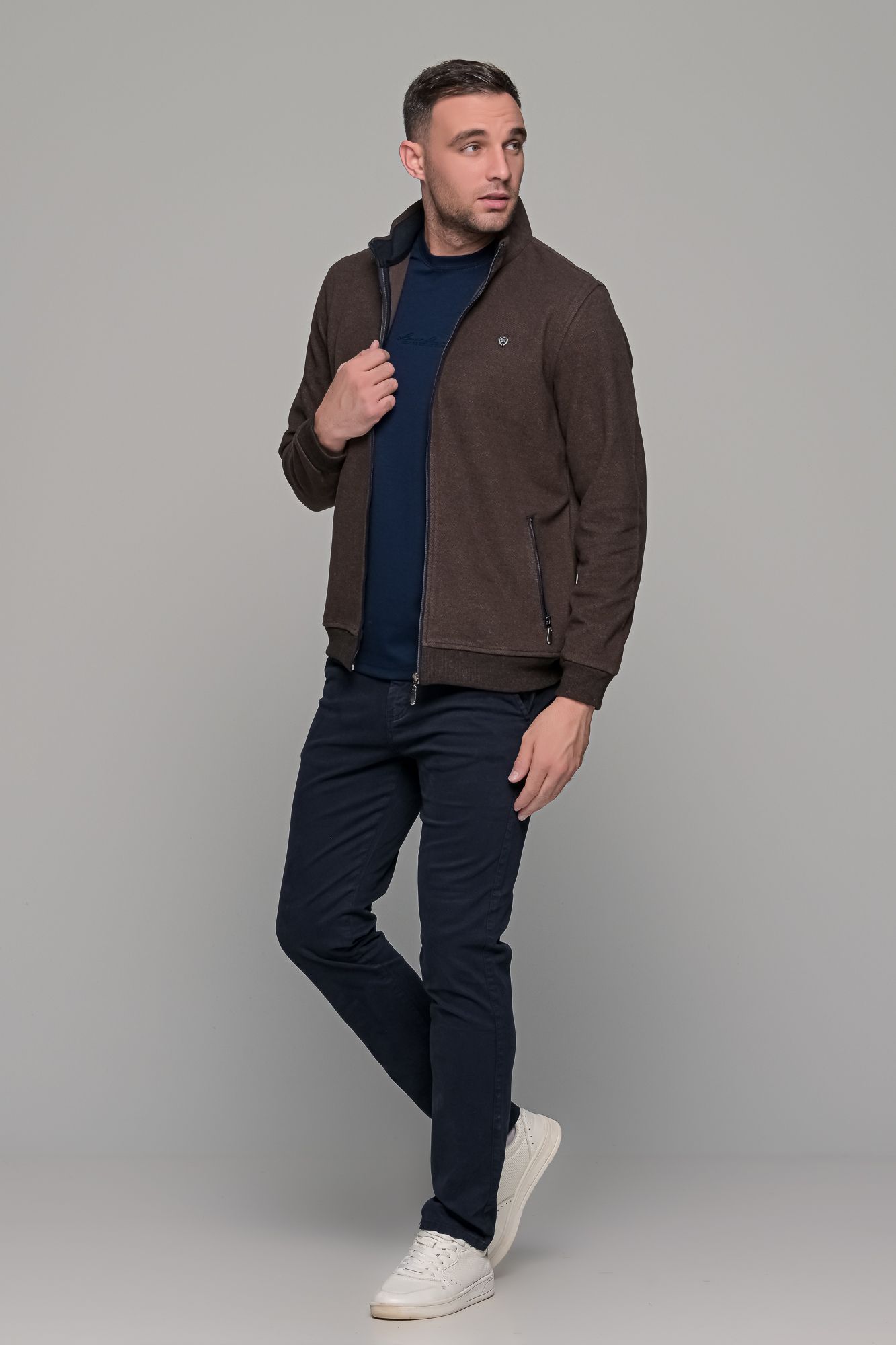 Καφέ ανδρική ζακέτα MS με τσέπες και διακριτικό μπλε σχέδιο στο φερμουάρ. Η σύνθεση της είναι συνδυασμός από βαμβάκι και συνθετικό έτσι ώστε το ρούχο να είναι μαλακό, ανθεκτικό και να αφήνει το δέρμα να αναπνέει. Έχει δυο πλαϊνές εξωτερικές τσέπες που κλείνουν με φερμουάρ ενώ ο γιακάς της είναι όρθιος, τύπου λουπέτο. Διαθέτει λάστιχο στο τελείωμα και στα μανίκια για καλύτερη εφαρμογή. Έχει διακριτικό μεταλλικό λογότυπο στο στήθος. Μπορεί να φορεθεί με μπλουζάκι μακρυμάνικο ή με λεπτό βαμβακερό πλεκτό για πιο casual εμφανίσεις είτε με ένα πουκάμισο για βραδινές εξόδους. Η γραμμή της, όπως και η εφαρμογή της, είναι στενή (slim fit) οπότε συστήνεται η αγορά ενός μεγέθους μεγαλύτερου από το σύνηθες μέγεθος σας.
