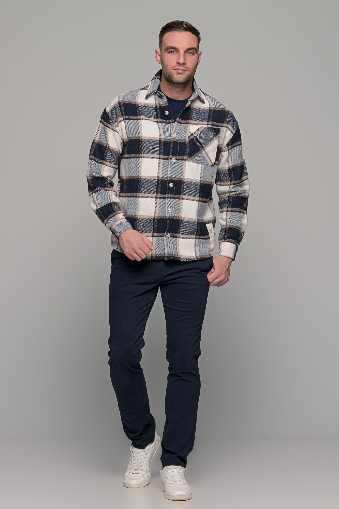 Καρό jacket πουκάμισο φανελένιο σε χρώμα μπλε-λευκό με δύο μπροστινές τσέπες. Είναι ιδιαίτερα ζεστό για τους χειμερινούς μήνες. Η γραμμή του είναι άνετη (Loose Fit) και τα μεγέθη κανονικά. Συνιστάτε η αγορά του μεγέθους που φοράτε συνήθως.
