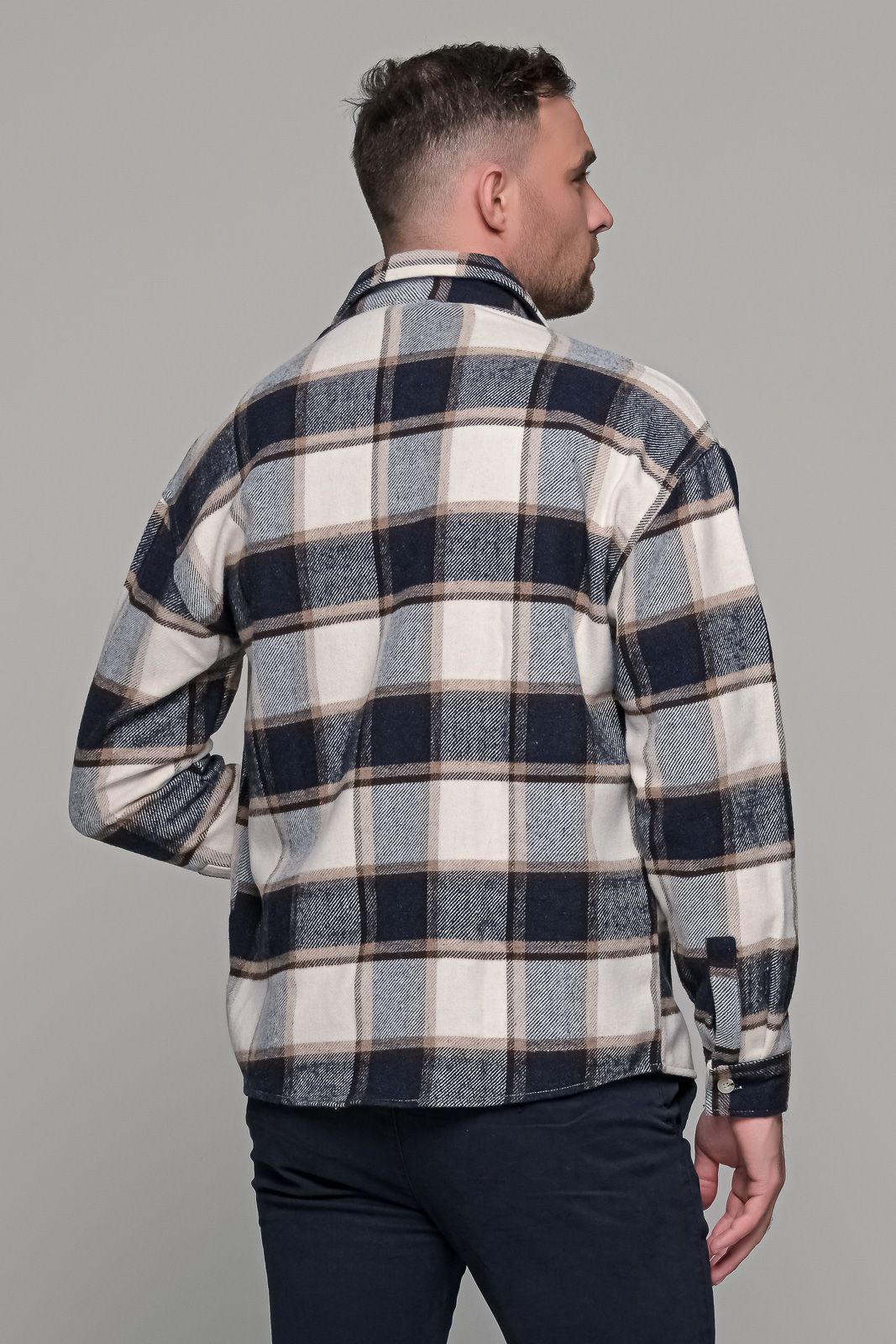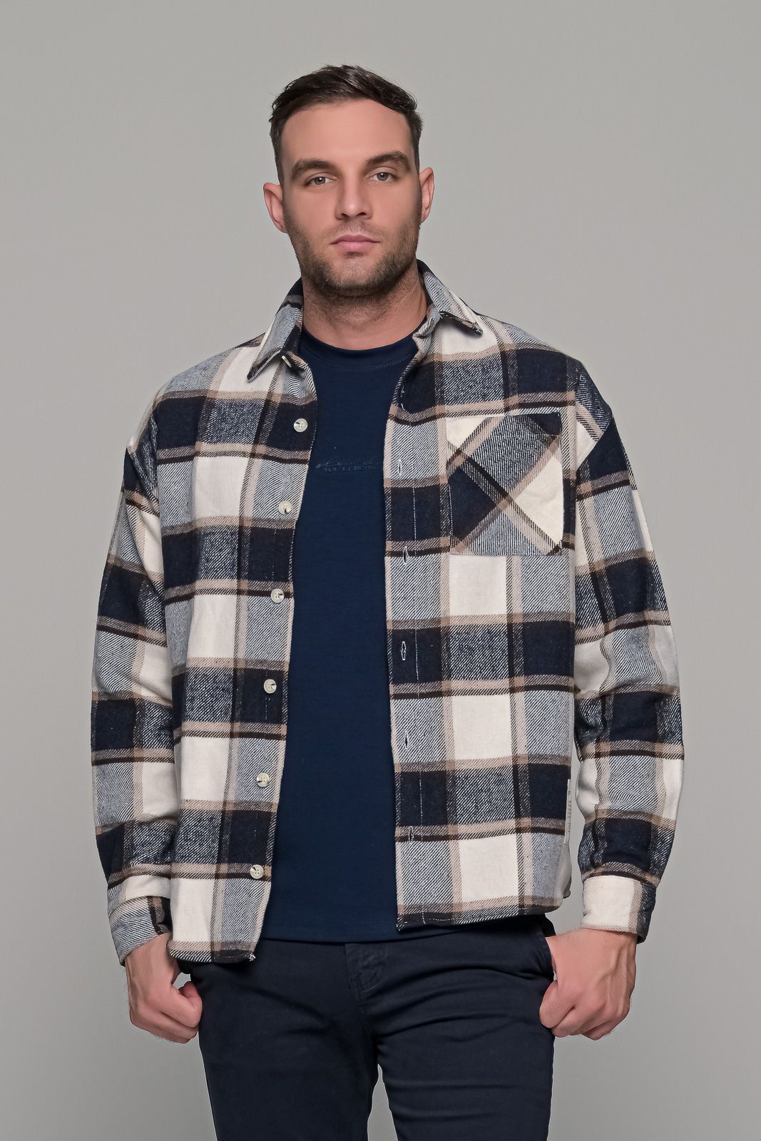 Καρό jacket πουκάμισο φανελένιο σε χρώμα μπλε-λευκό- Loose fit