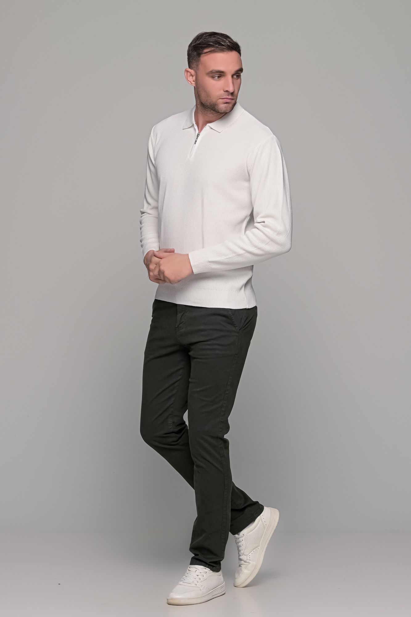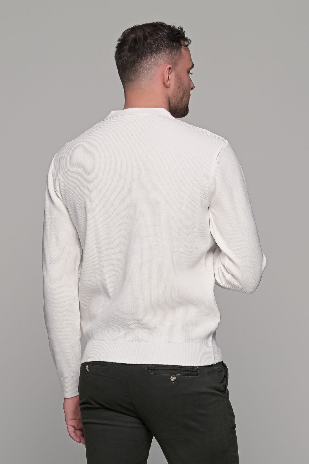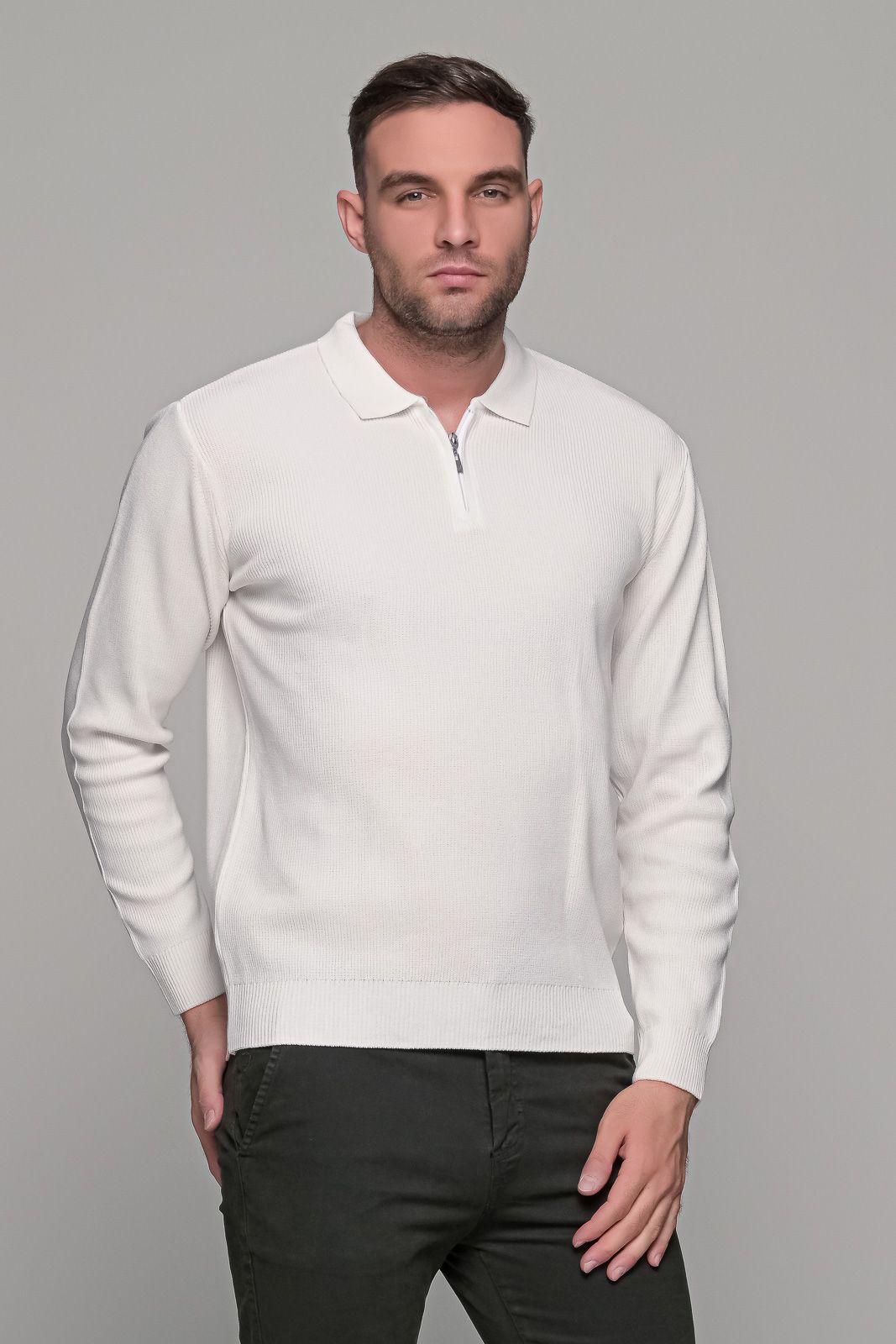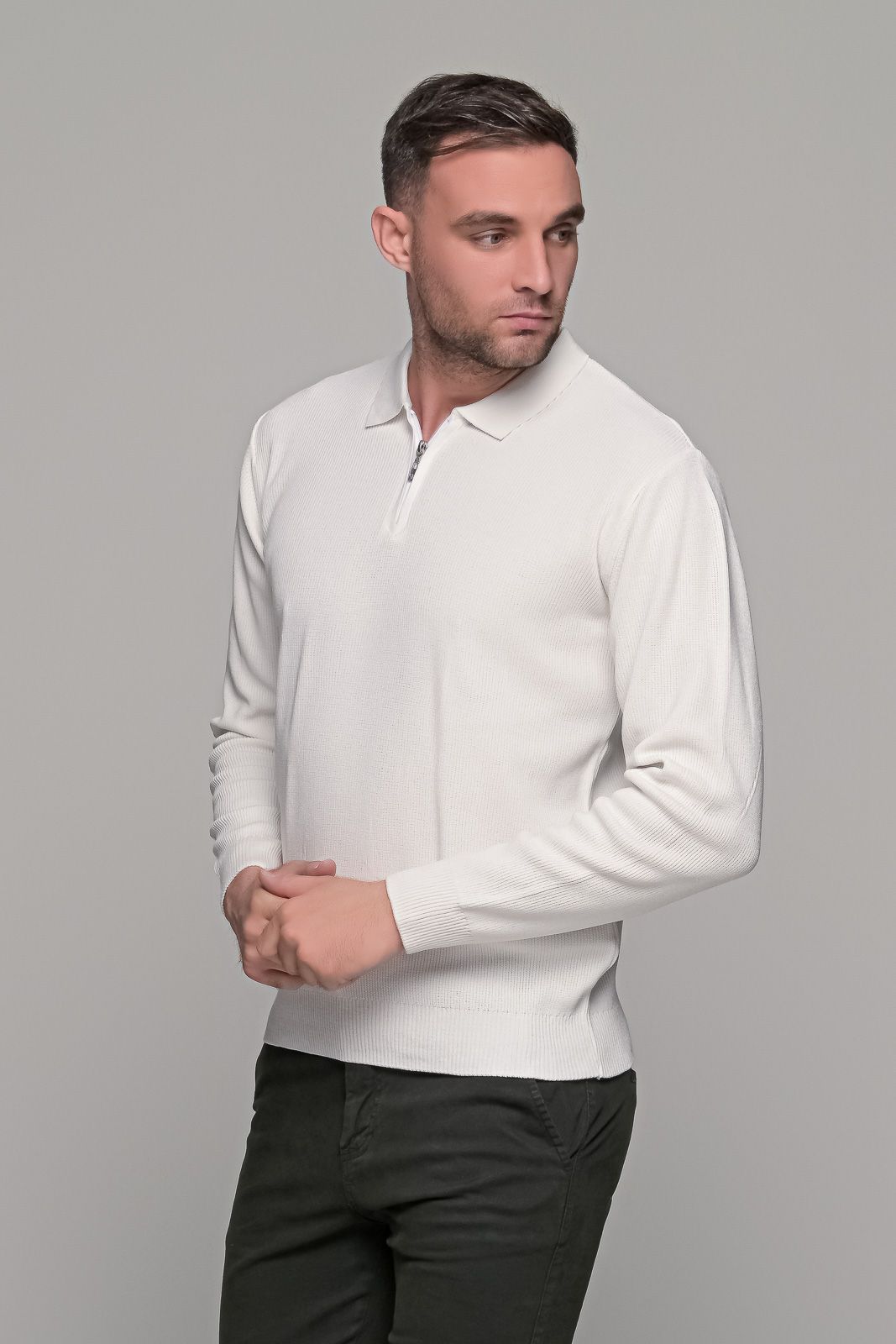 Λευκό ανδρικό πλεκτό μπλουζάκι με φερμουάρ