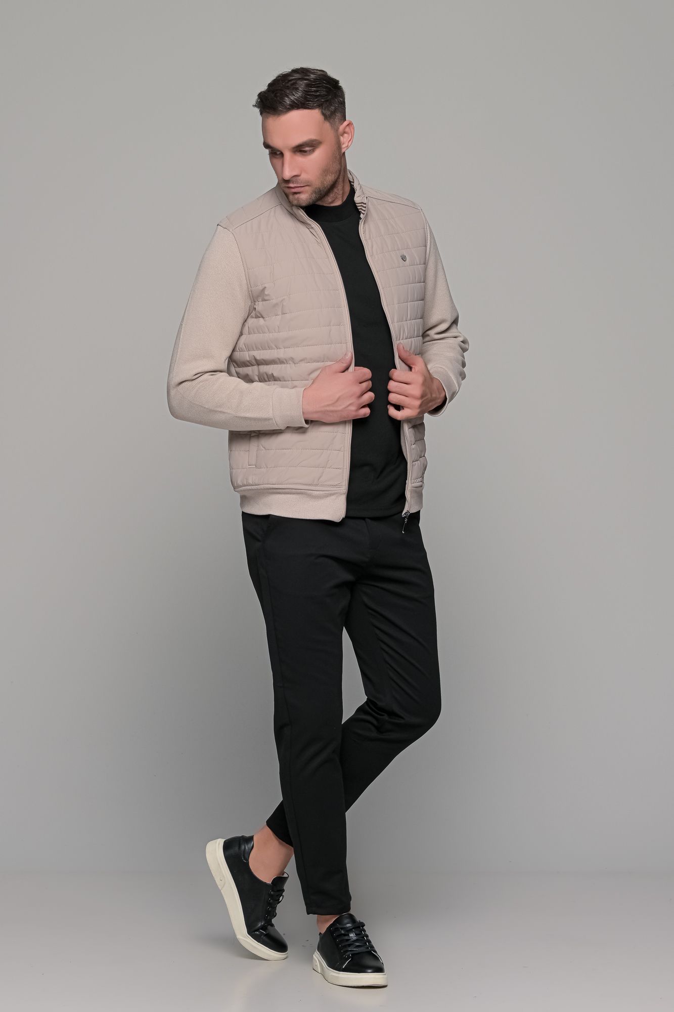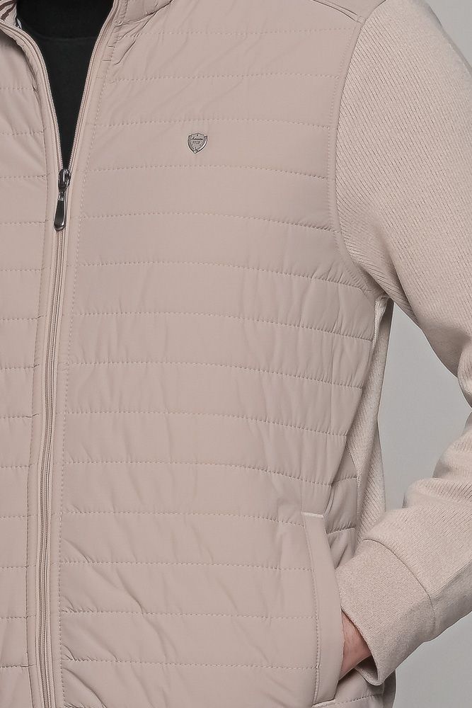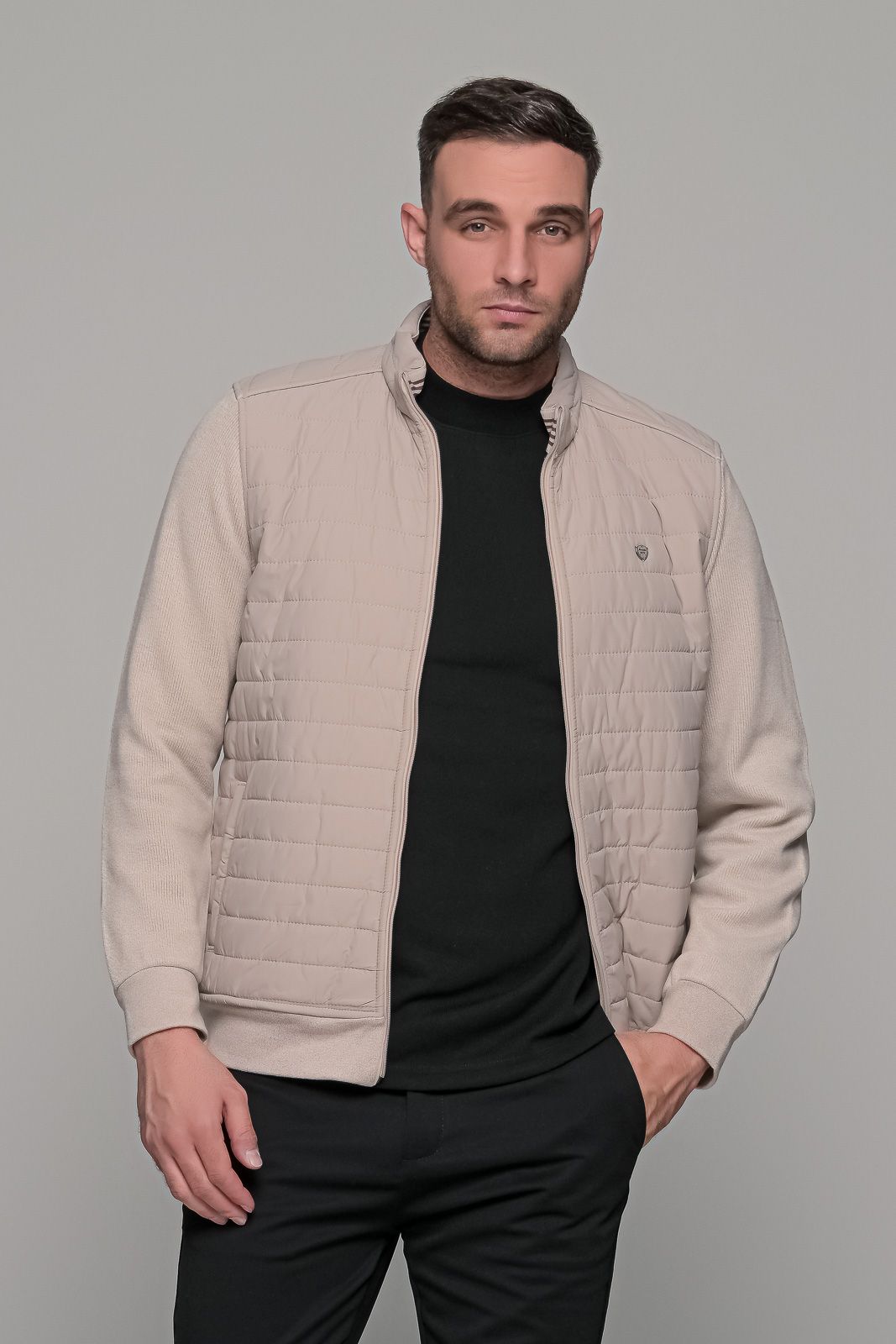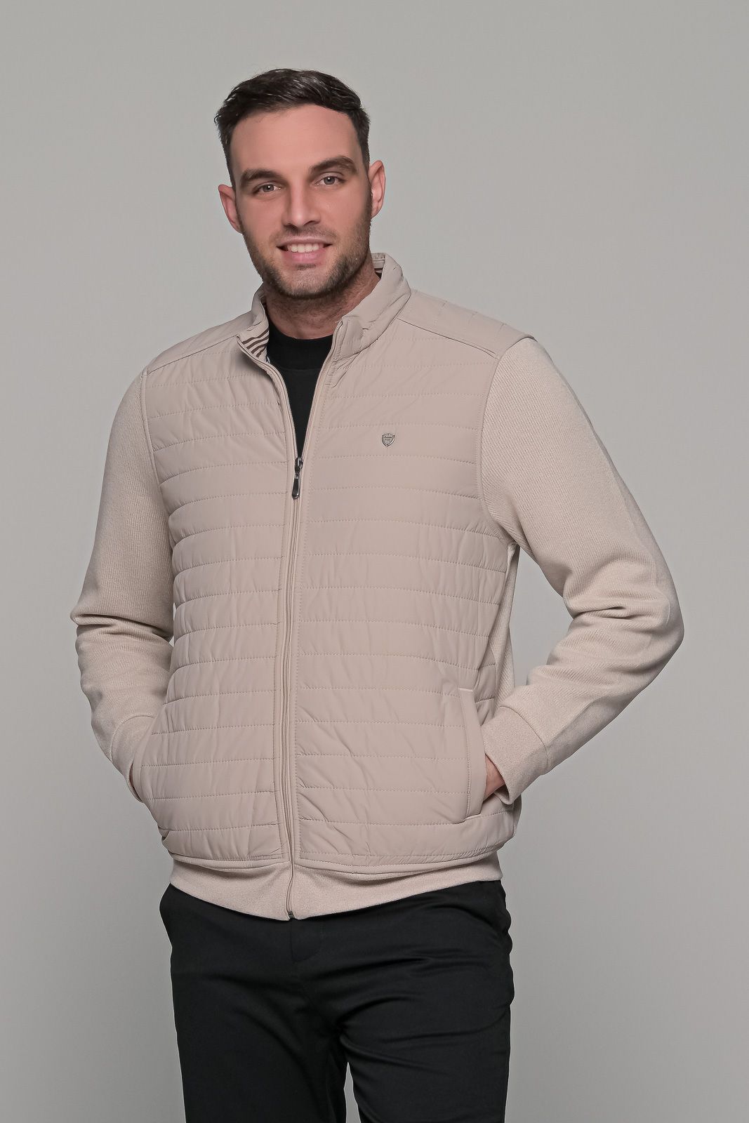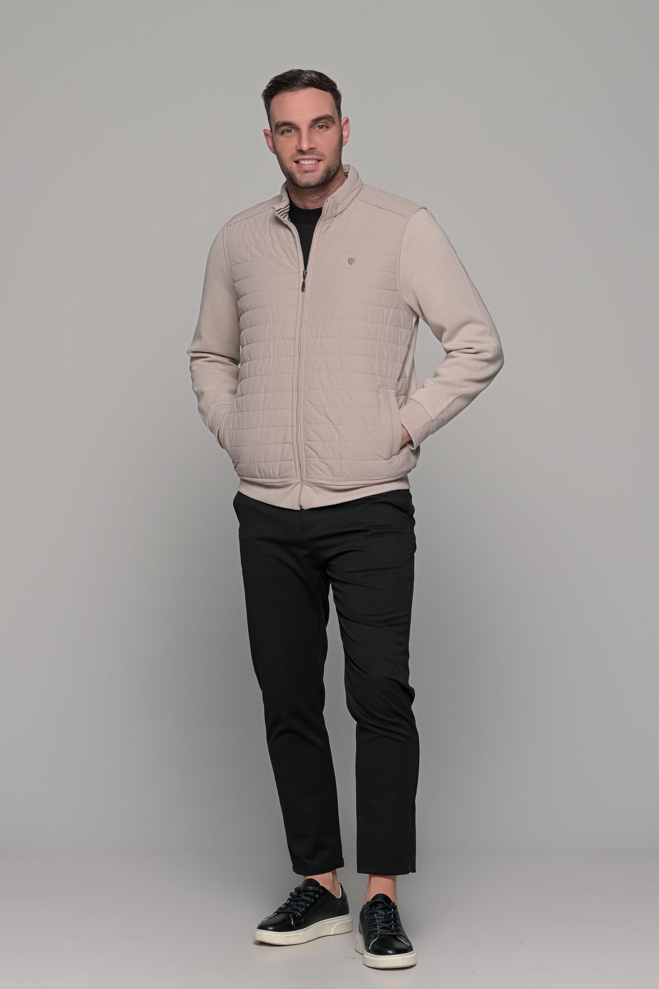 Εκρού ανδρική ζακέτα με επένδυση μπροστά και πλέξη. Η σύνθεση της είναι συνδυασμός από βαμβάκι και συνθετικό έτσι ώστε το ρούχο να είναι μαλακό, ανθεκτικό και να αφήνει το δέρμα να αναπνέει. Έχει δυο πλαϊνές εξωτερικές τσέπες ενώ ο γιακάς της είναι όρθιος, τύπου λουπέτο. Στο μπροστινό κομμάτι έχει επένδυση με ύφασμα ,σε χρώμα ίδιο με την υπόλοιπη ζακέτα, που δίνει την αίσθηση γιλέκου. Επίσης, τα μανίκια και το πίσω μέρος είναι πλεκτά ενώ έχει διακριτικό μεταλλικό λογότυπο στο στήθος. Διαθέτει λάστιχο στο τελείωμα και στα μανίκια ώστε να προσαρμόζει στο ύψος εκεί που σας βολεύει καλύτερα. Μπορεί να φορεθεί με μπλουζάκι μακρυμάνικο ή με λεπτό βαμβακερό πλεκτό για πιο casual εμφανίσεις είτε με ένα πουκάμισο για βραδινές εξόδους. Η γραμμή και η εφαρμογή της είναι στενή (slim fit) οπότε συστήνεται η αγορά ενός μεγέθους μεγαλύτερου από το σύνηθες μέγεθος σας.