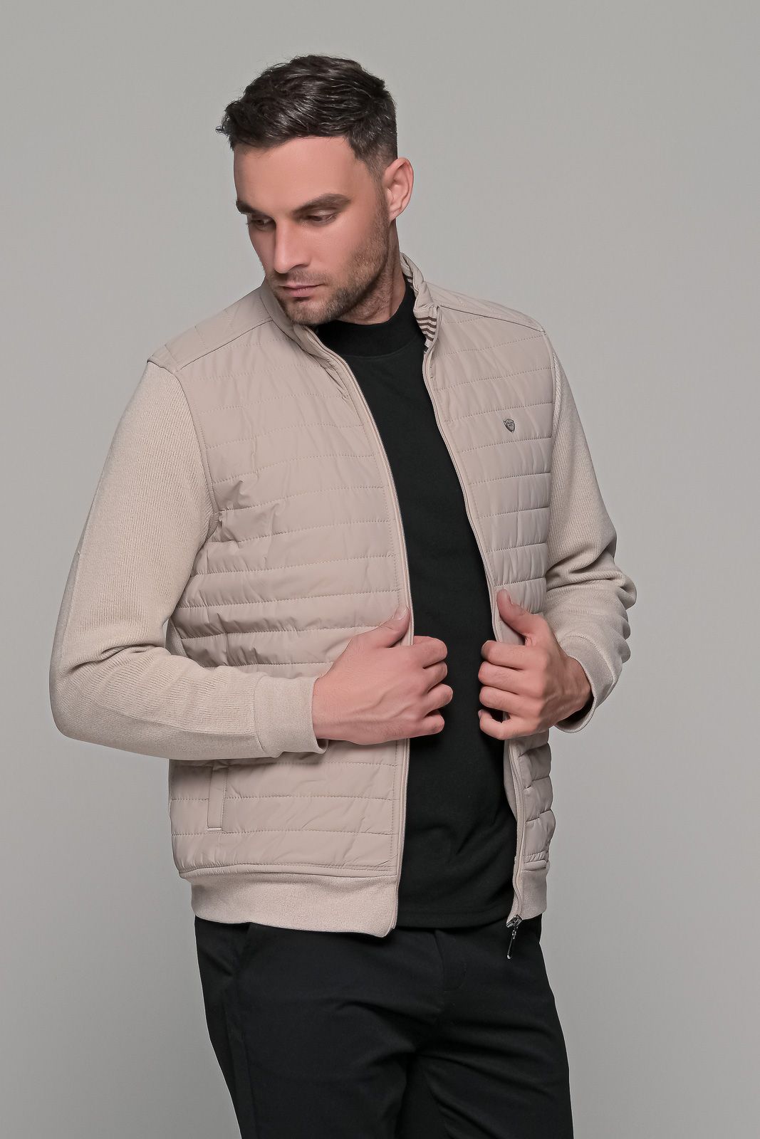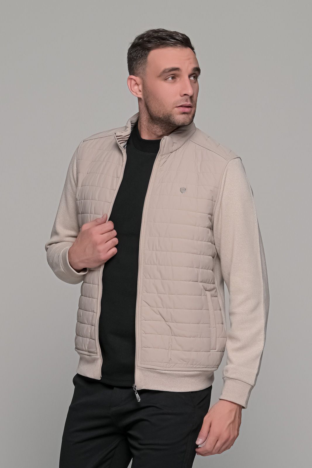 Πλεκτή εκρού ανδρική ζακέτα με επένδυση μπροστά MS – slim fit
