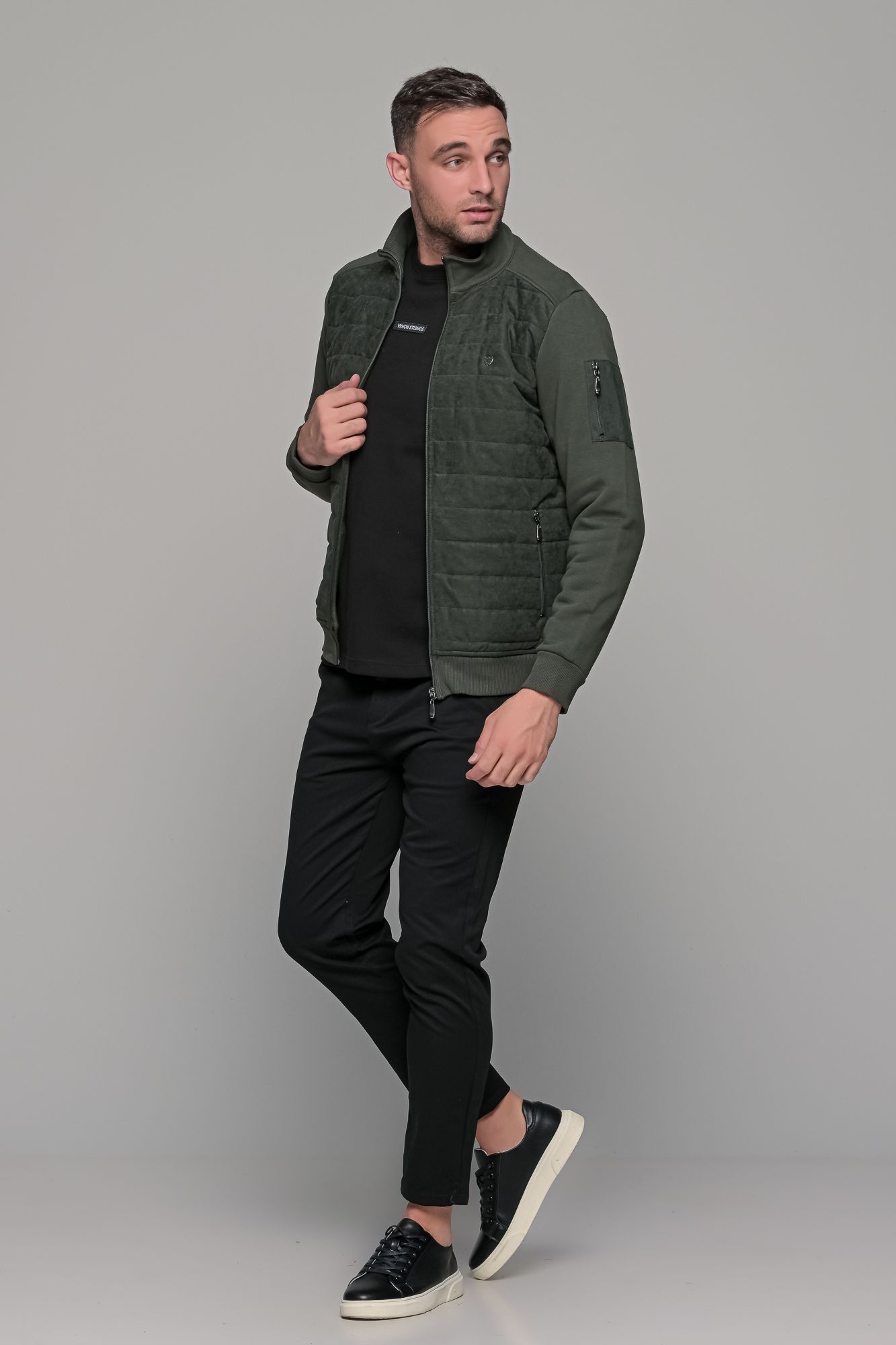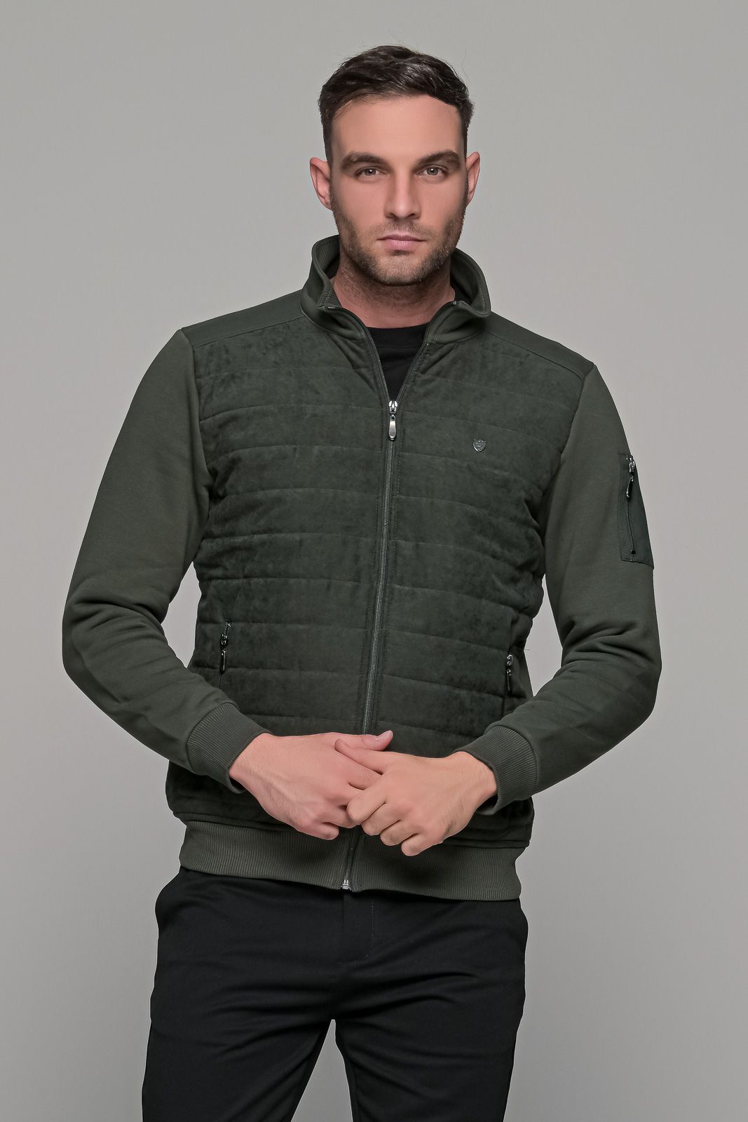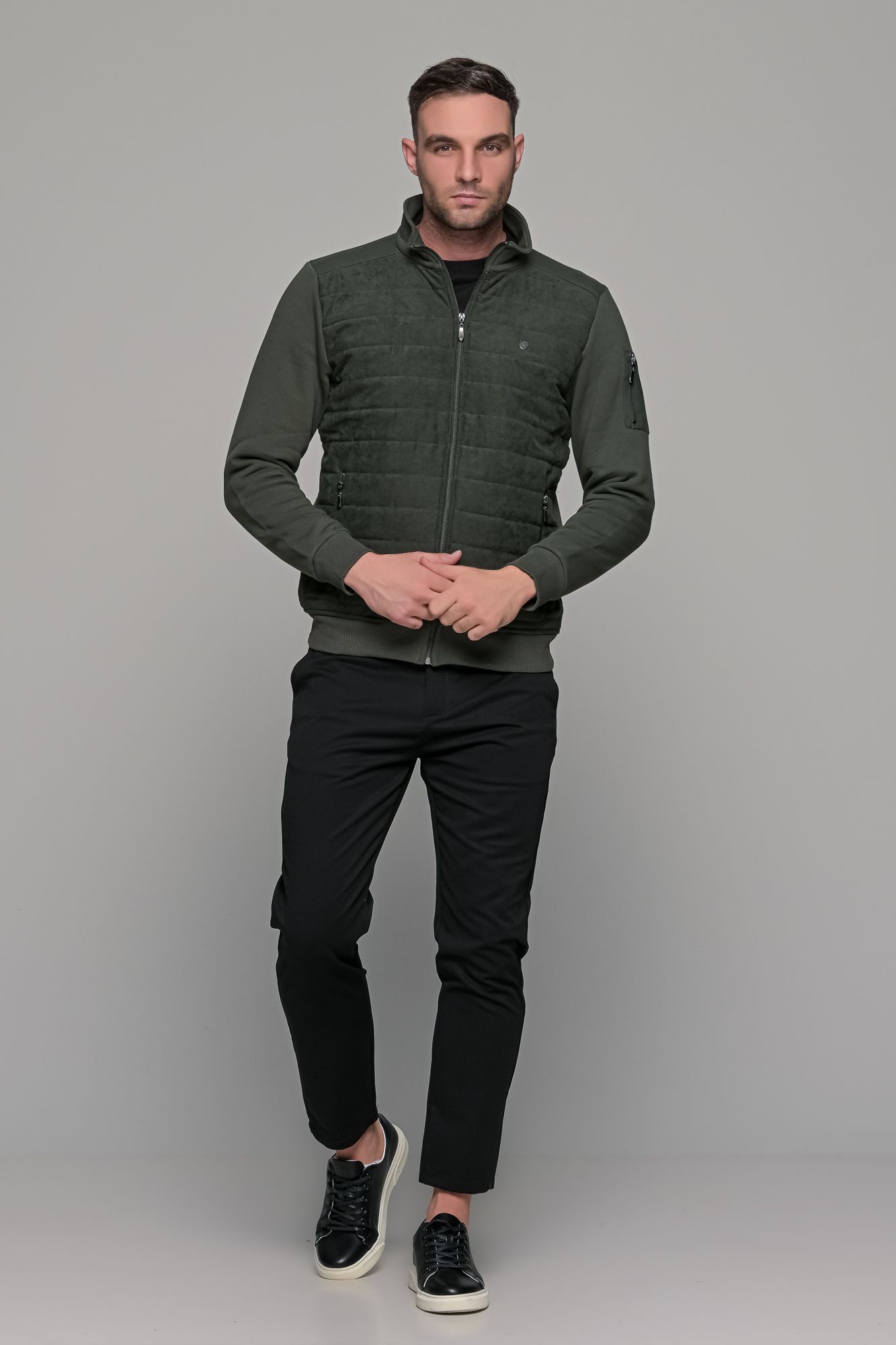Πράσινη χακί ανδρική ζακέτα με suede επένδυση και φερμουάρ MS – slim fit